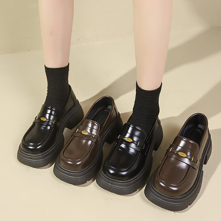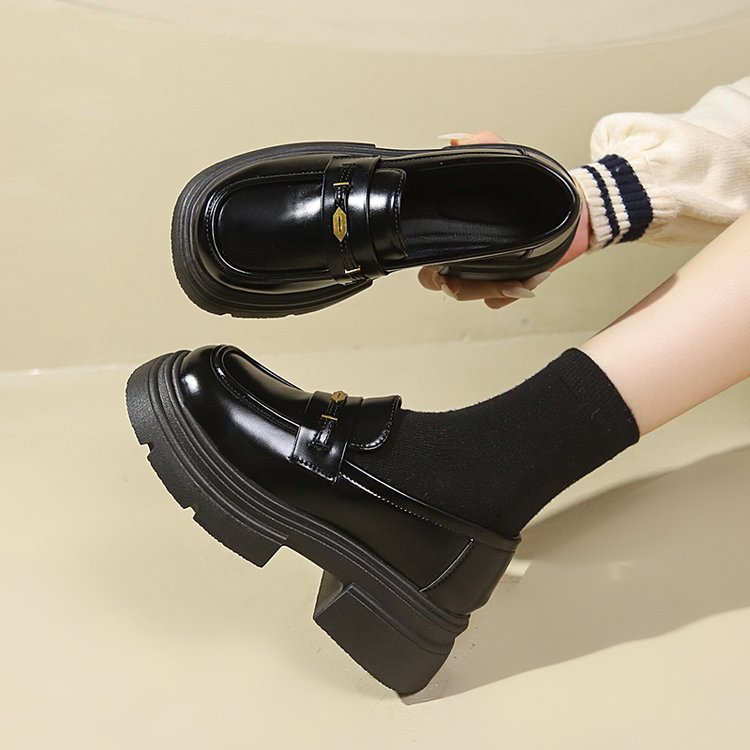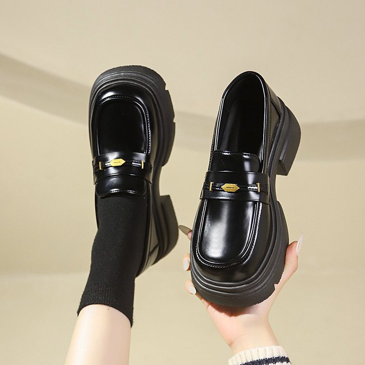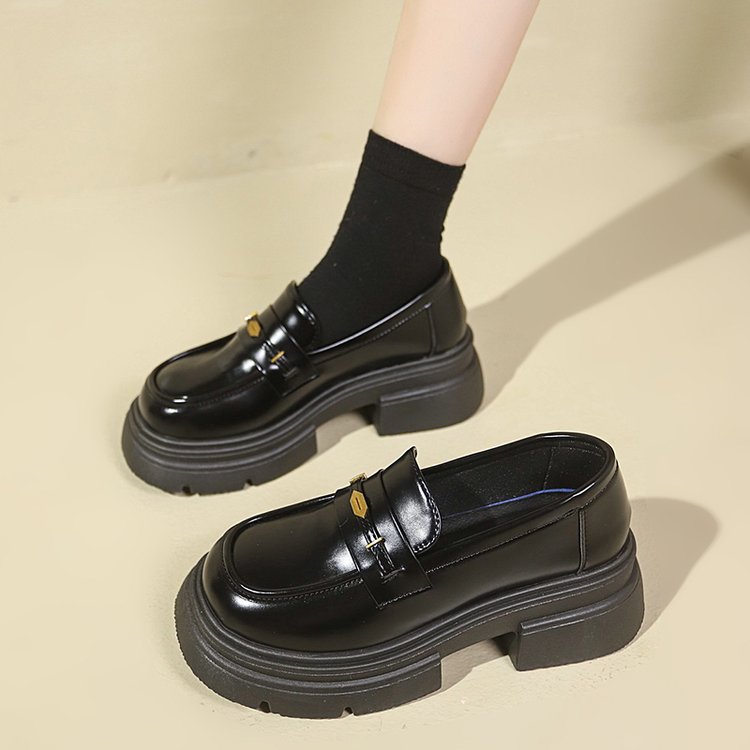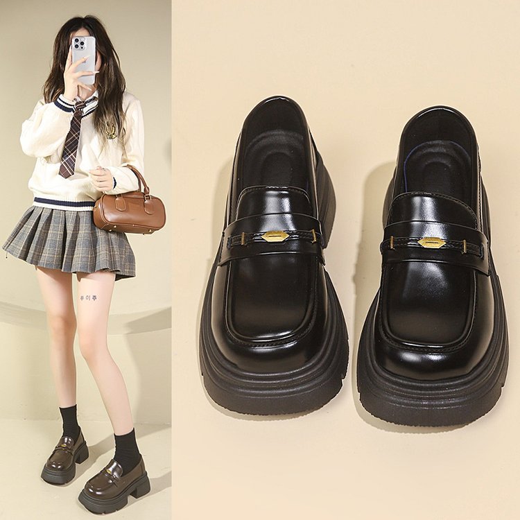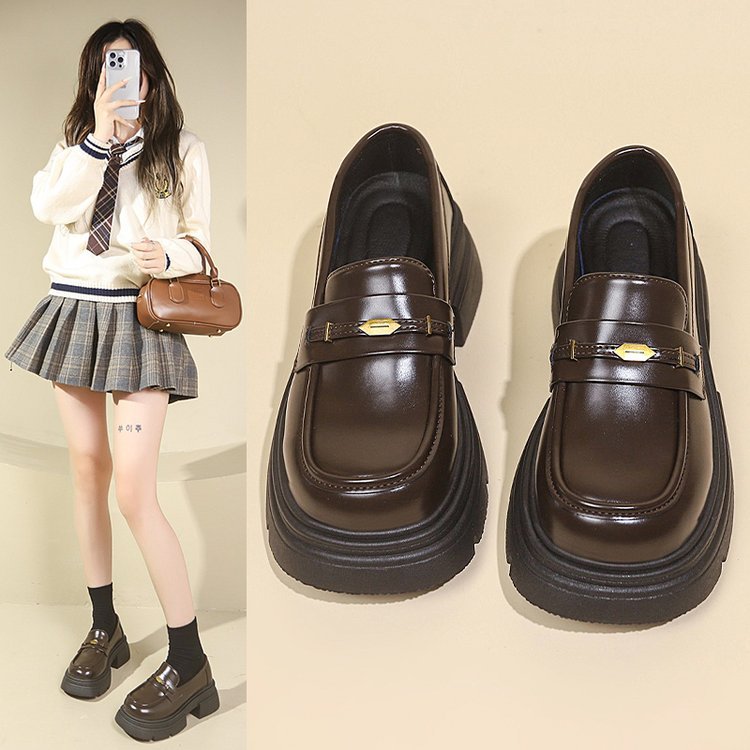 영국 스타일 가죽 신발 여성 2024 년 봄과 가을 청키 힐 올 매치 JK 싱글 레이어 신발 증가 두꺼운 단독 슬립 온 로퍼스토어 가기