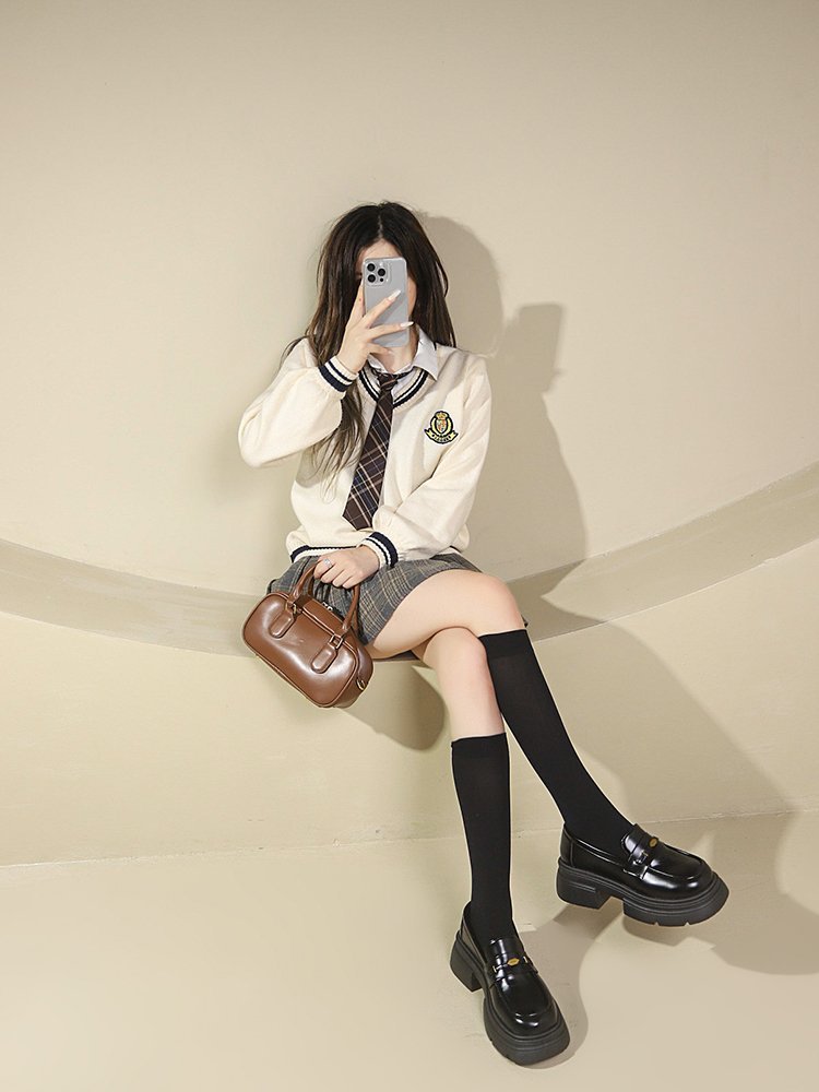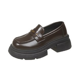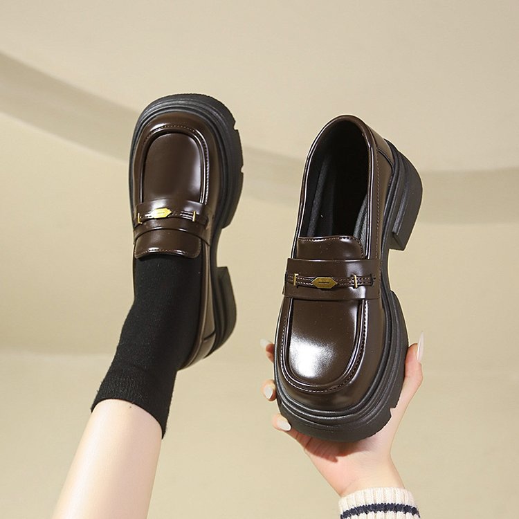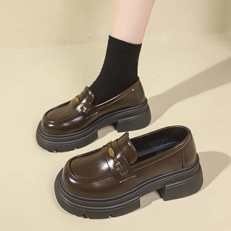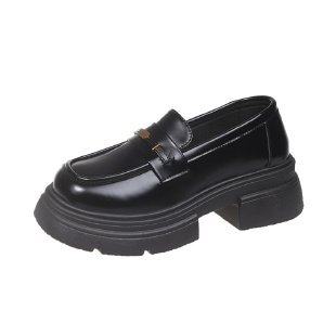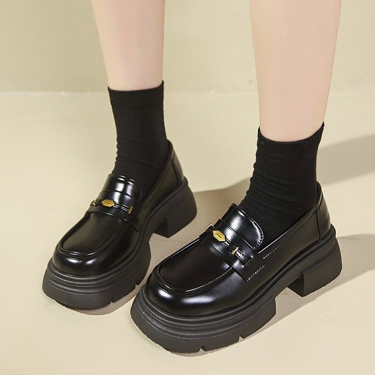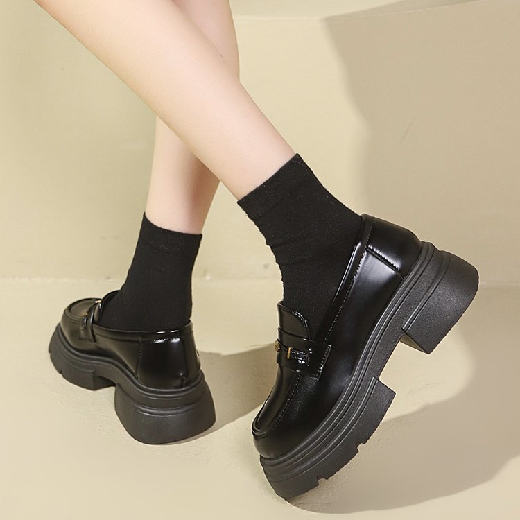 영국 스타일 가죽 신발 여성 2024 년 봄과 가을 청키 힐 올 매치 JK 싱글 레이어 신발 증가 두꺼운 단독 슬립 온 로퍼스토어 가기
