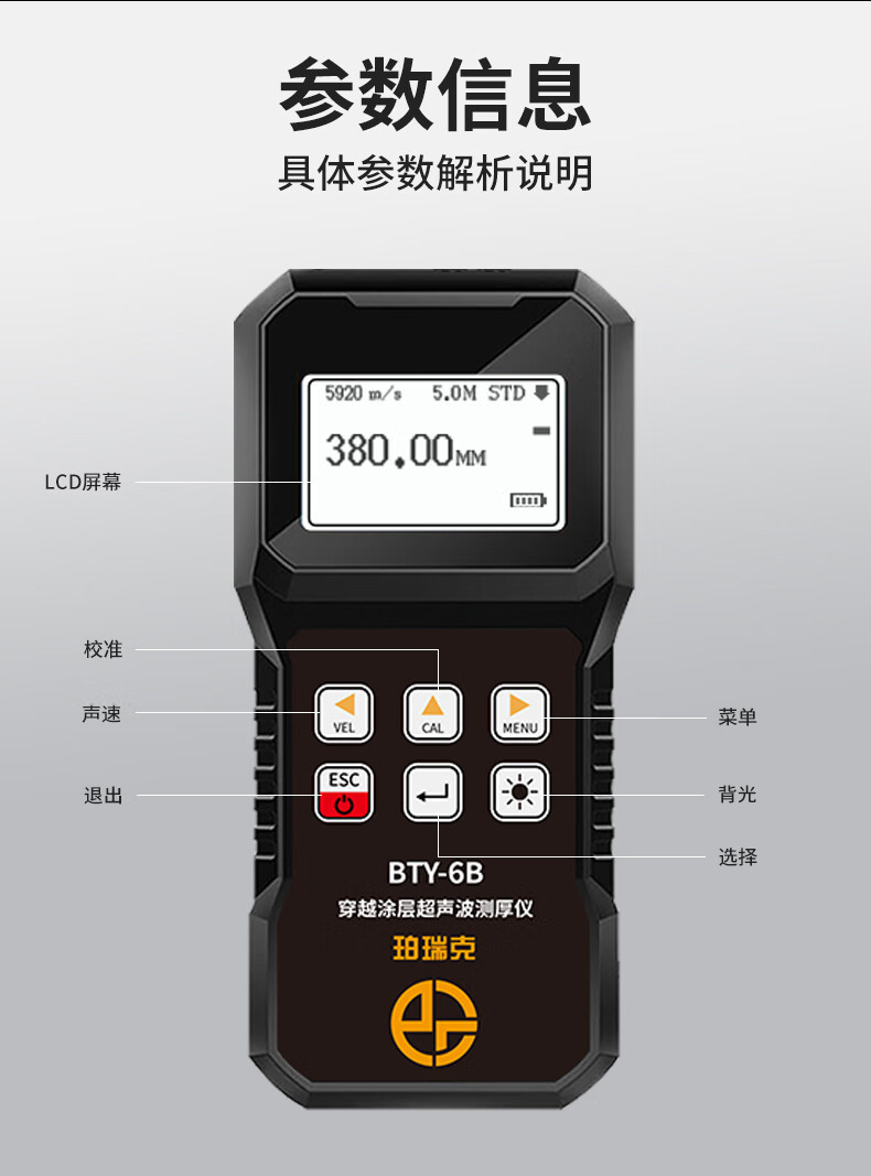 코팅 초음파 두께 게이지 고정밀 유리 금속 두께 검출기를 통한 BTY-7