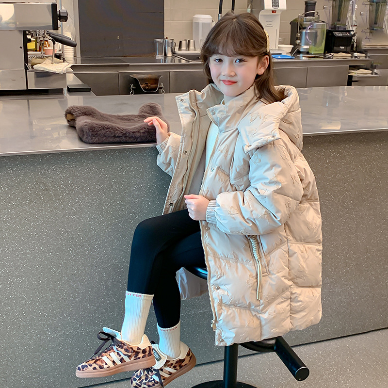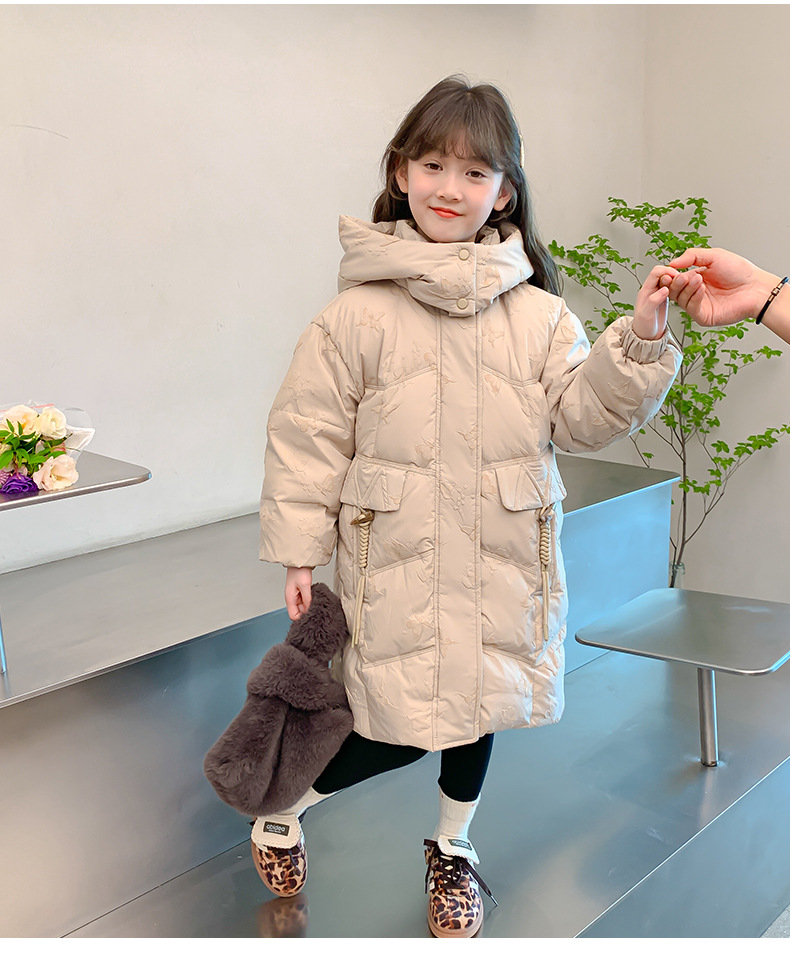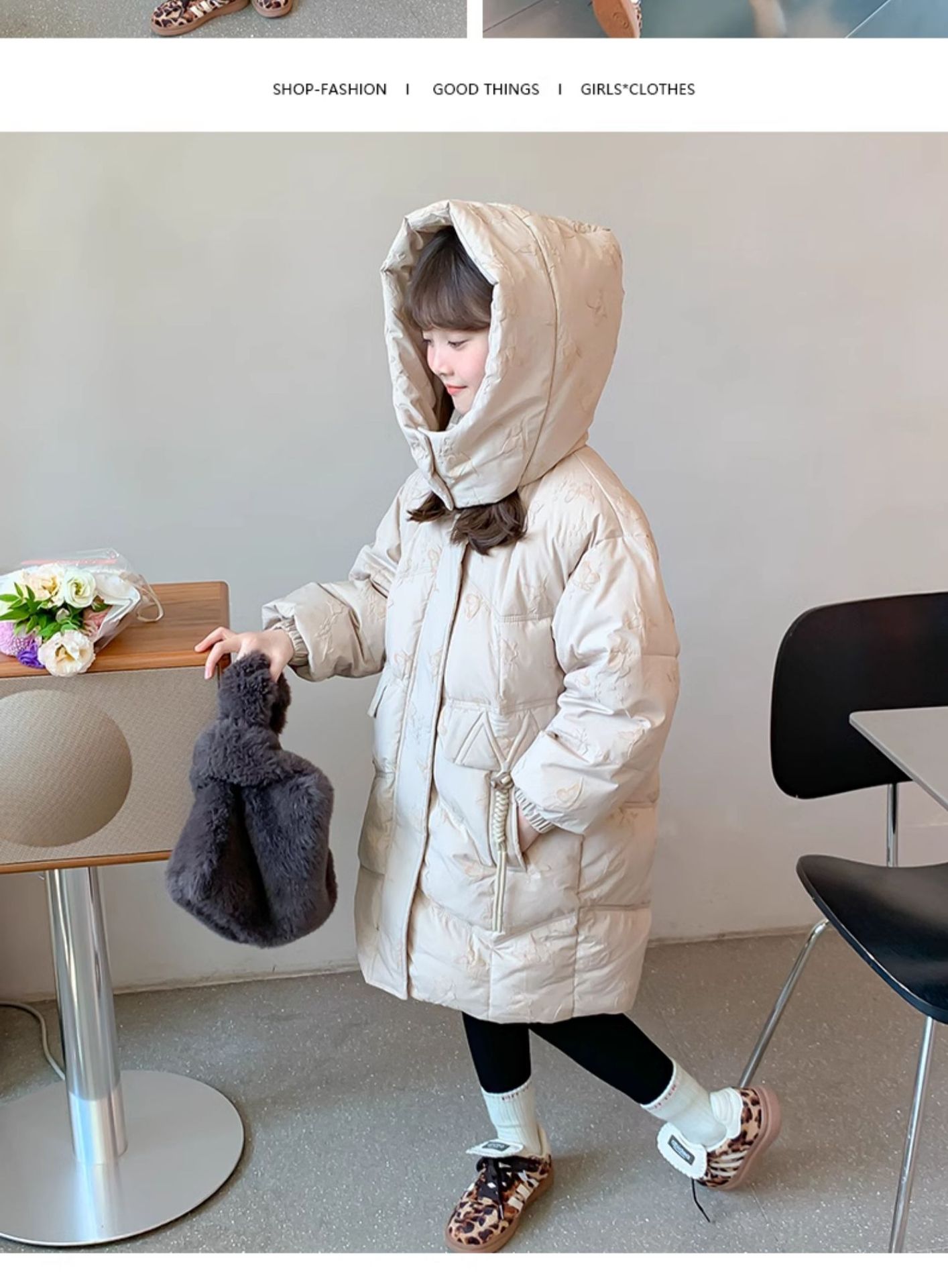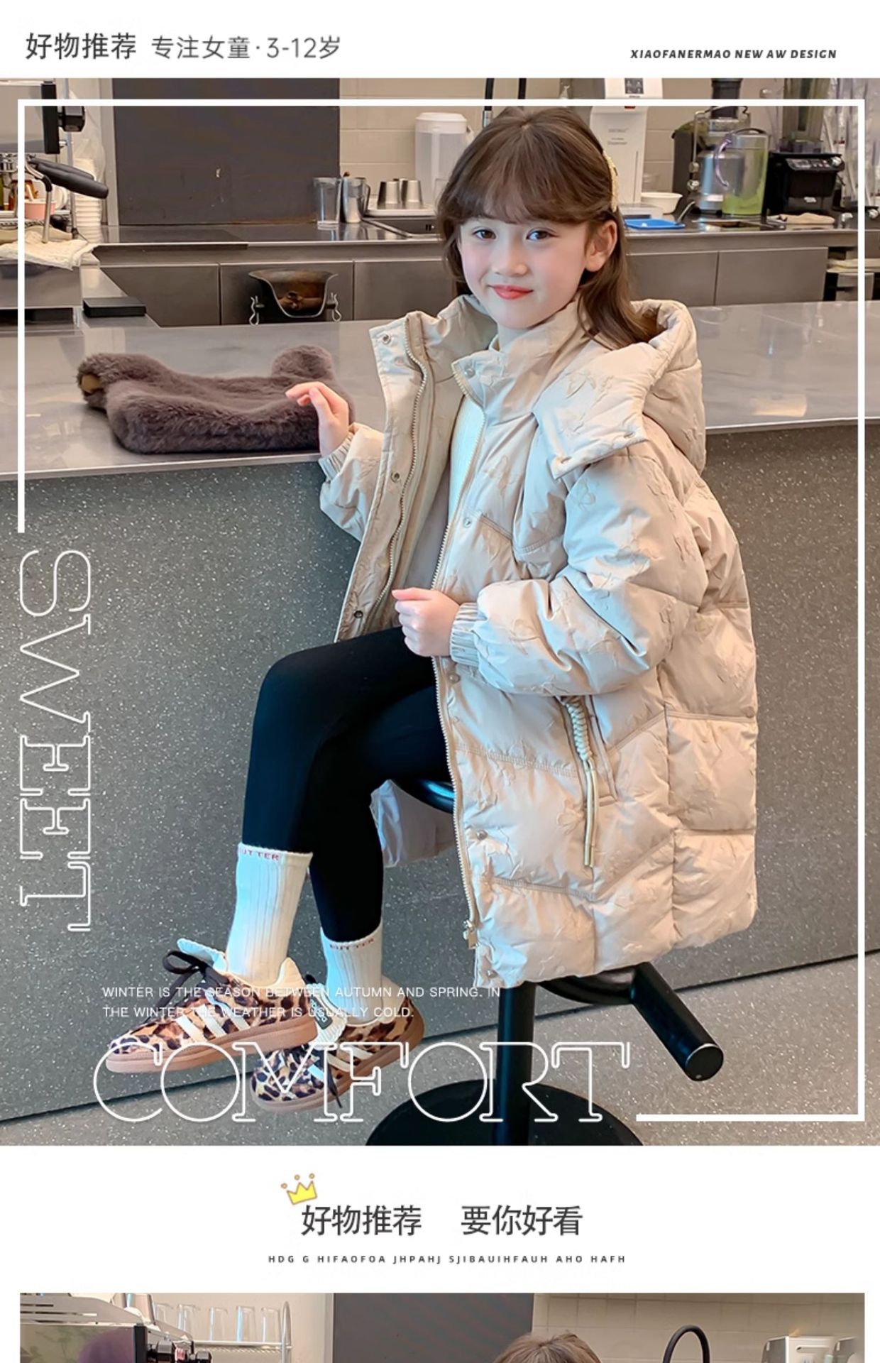 소녀 두꺼운 다운 재킷 2024 겨울 새로운 어린이 한국 스타일 따뜻한 흰색 오리 재킷 큰 어린이를위한 긴 겨울 옷스토어 가기