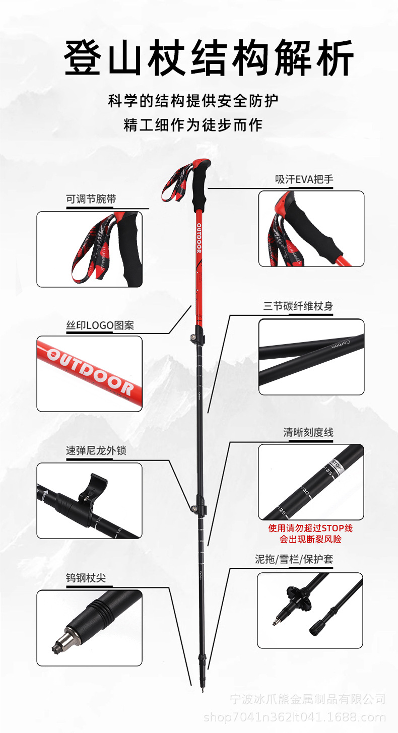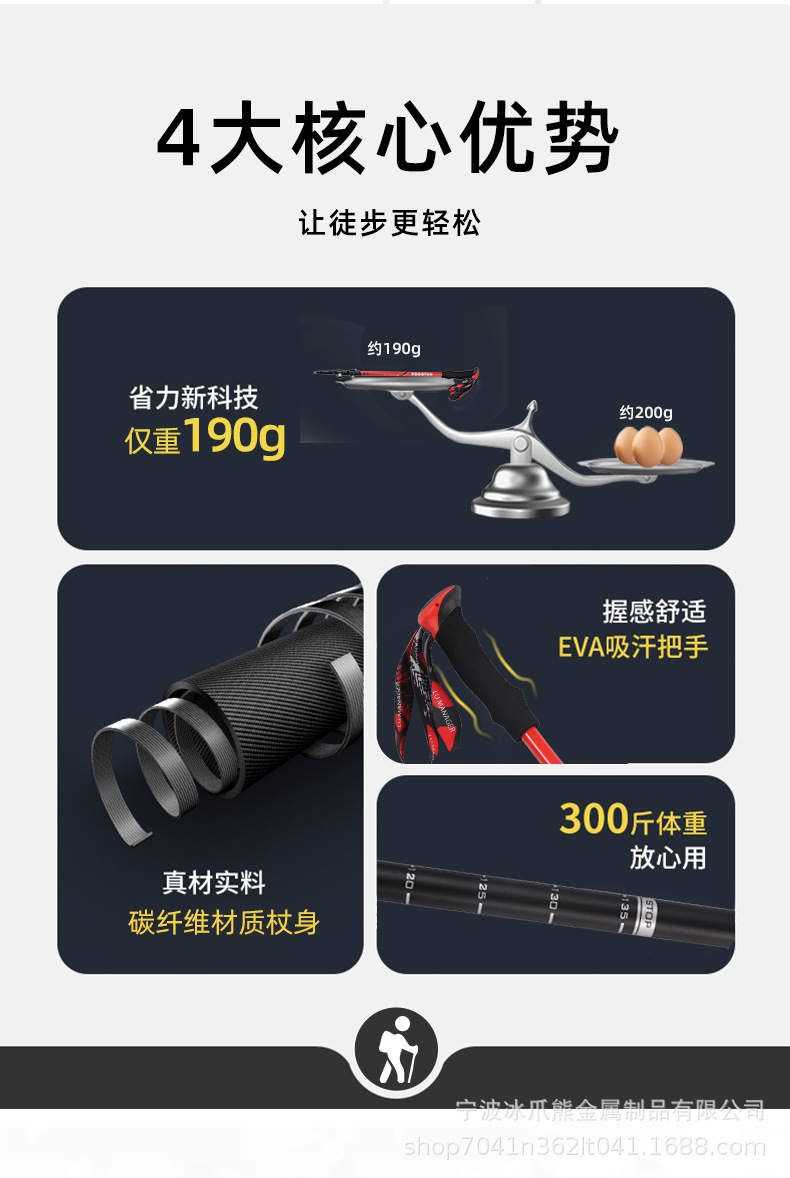 [소스 공장] 탄소 등산 지팡이 초경량 텔레스코픽 지팡이 탄소 섬유 접이식 전문 야외 지팡이스토어 가기