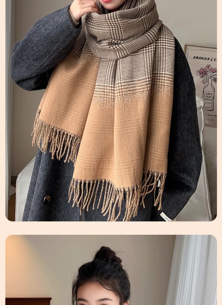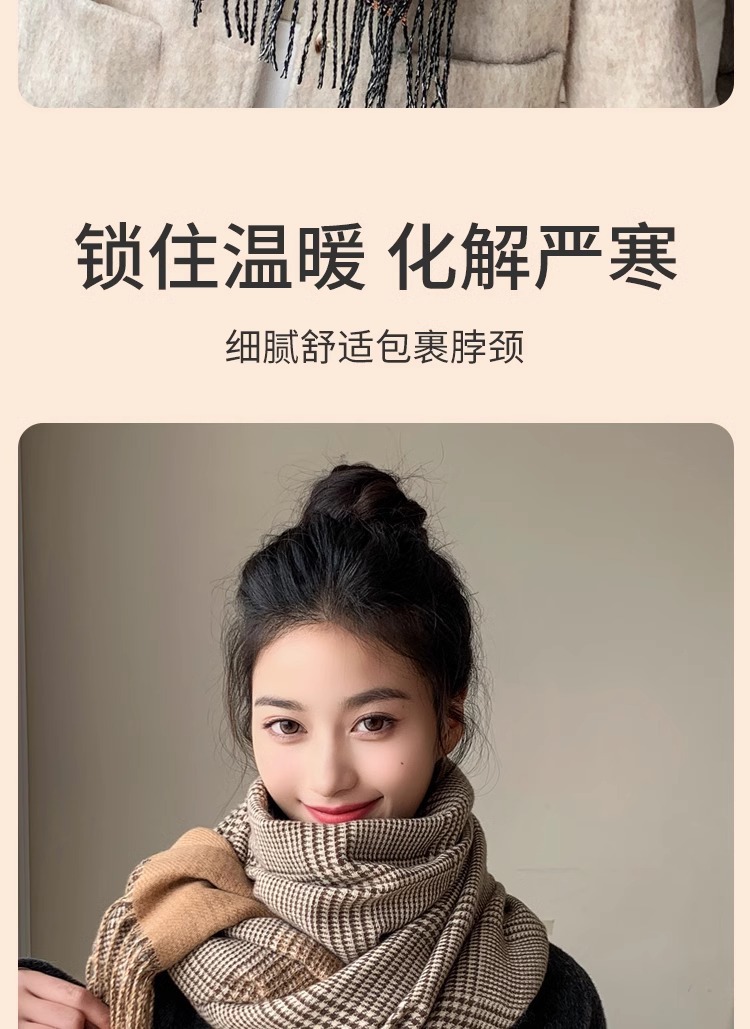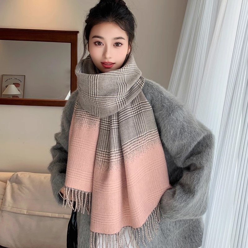 한국 2024 새로운 격자 무늬 스카프 여성 가을 겨울 학생 울 목 목도리 이중 목적 겨울 따뜻한스토어 가기