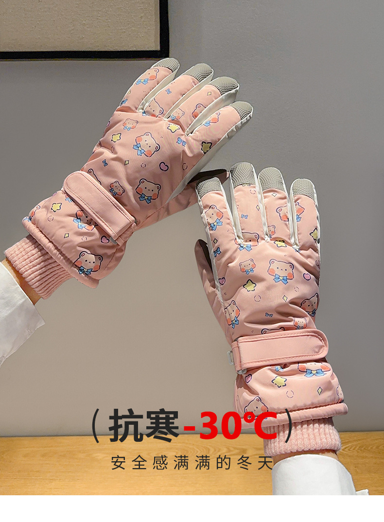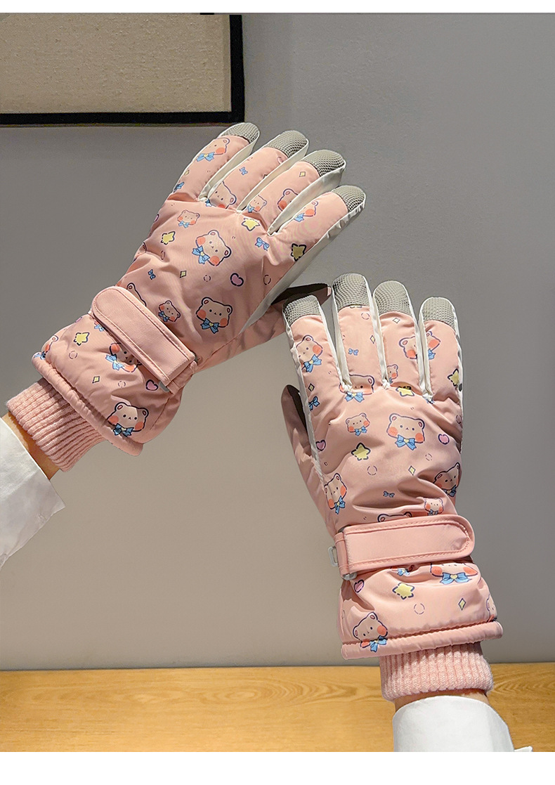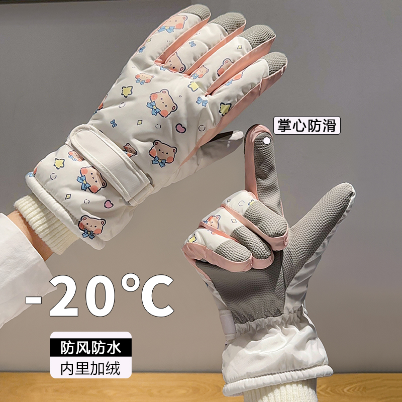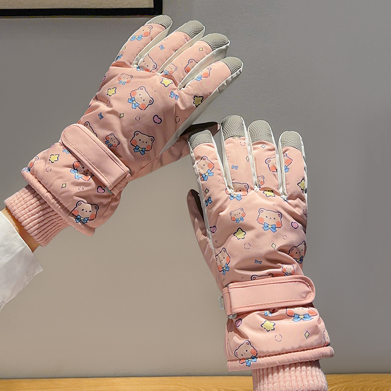 부모-어린이 스키 장갑 여성용 터치 스크린 귀여운 곰 기모 두꺼운 따뜻한 방한 승마 전기 자동차 방수