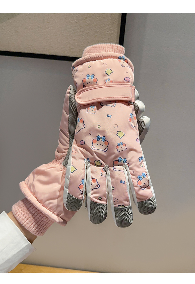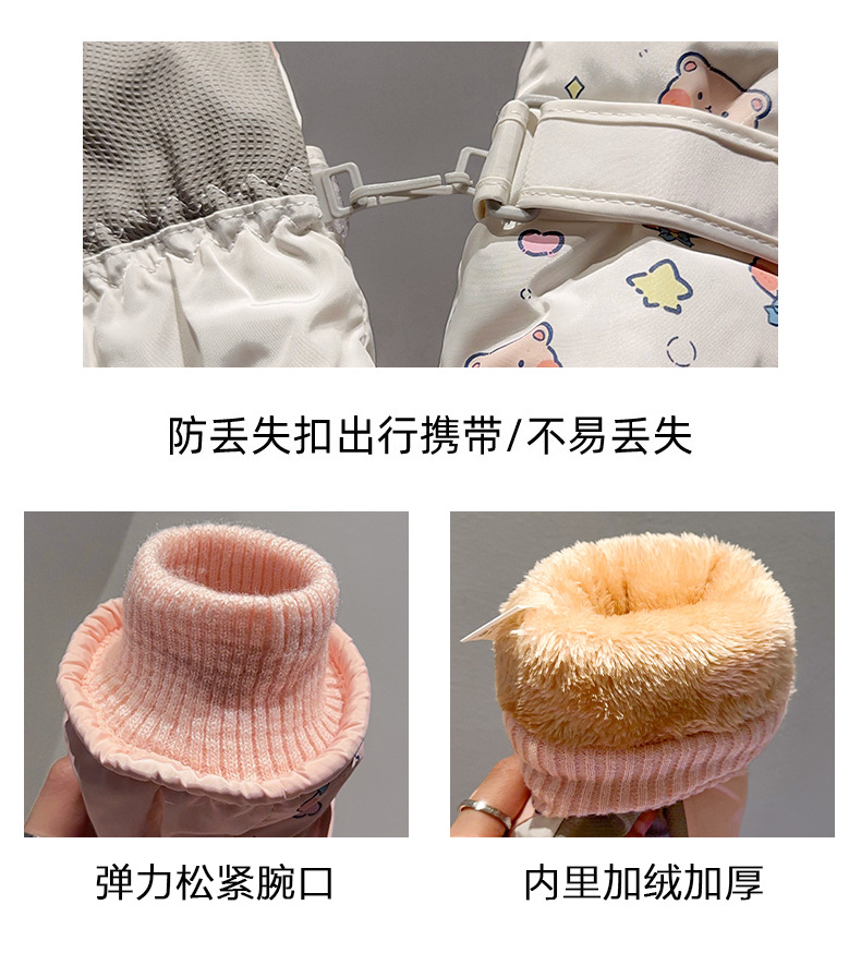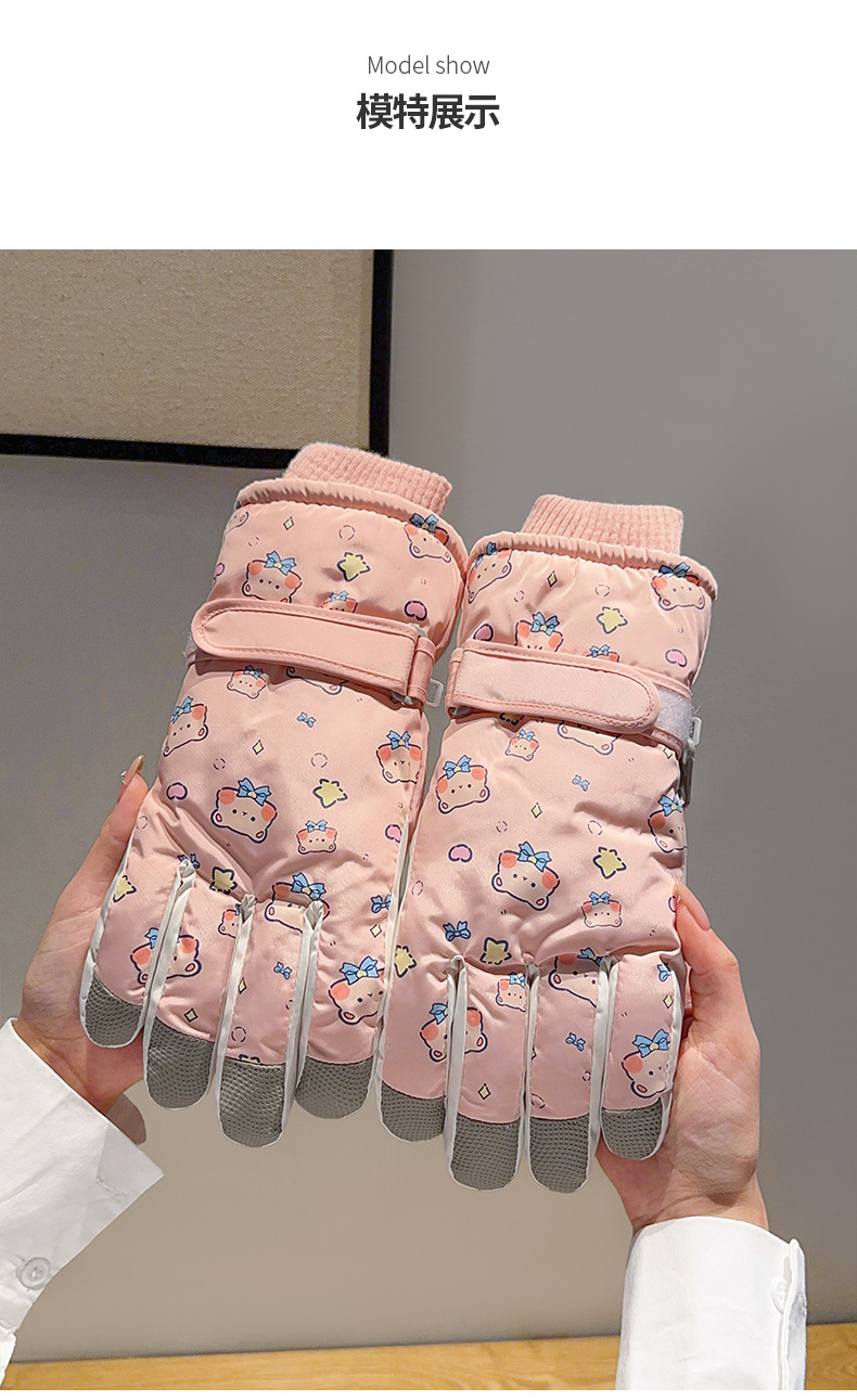 부모-어린이 스키 장갑 여성용 터치 스크린 귀여운 곰 기모 두꺼운 따뜻한 방한 승마 전기 자동차 방수스토어 가기