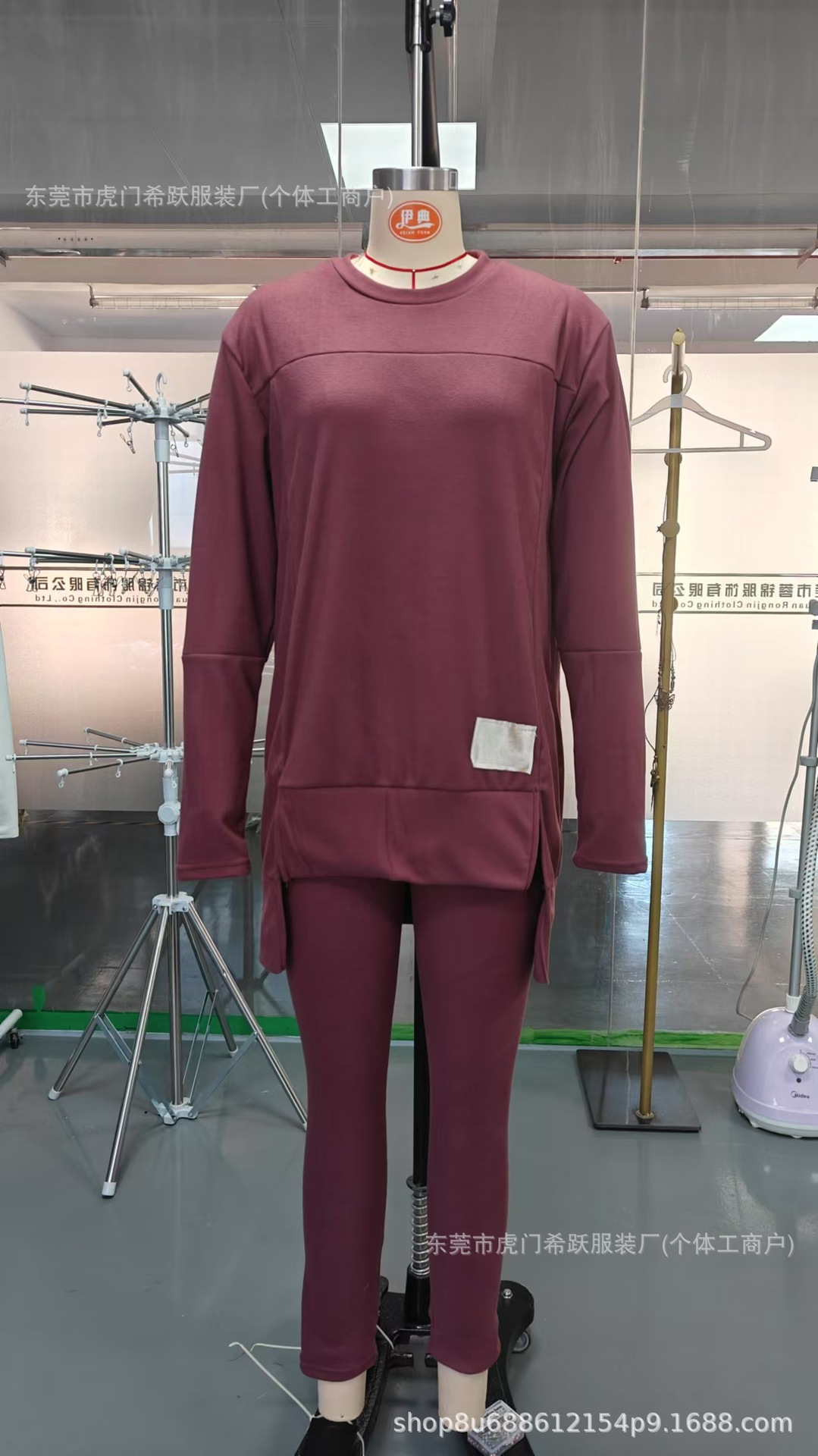 2024 유럽 및 미국 크로스보더 가을 겨울 인기 여성 상의 슬릿 긴팔 라운드넥 캐주얼 솔리드 컬러 독일산 벨벳 세트스토어 가기