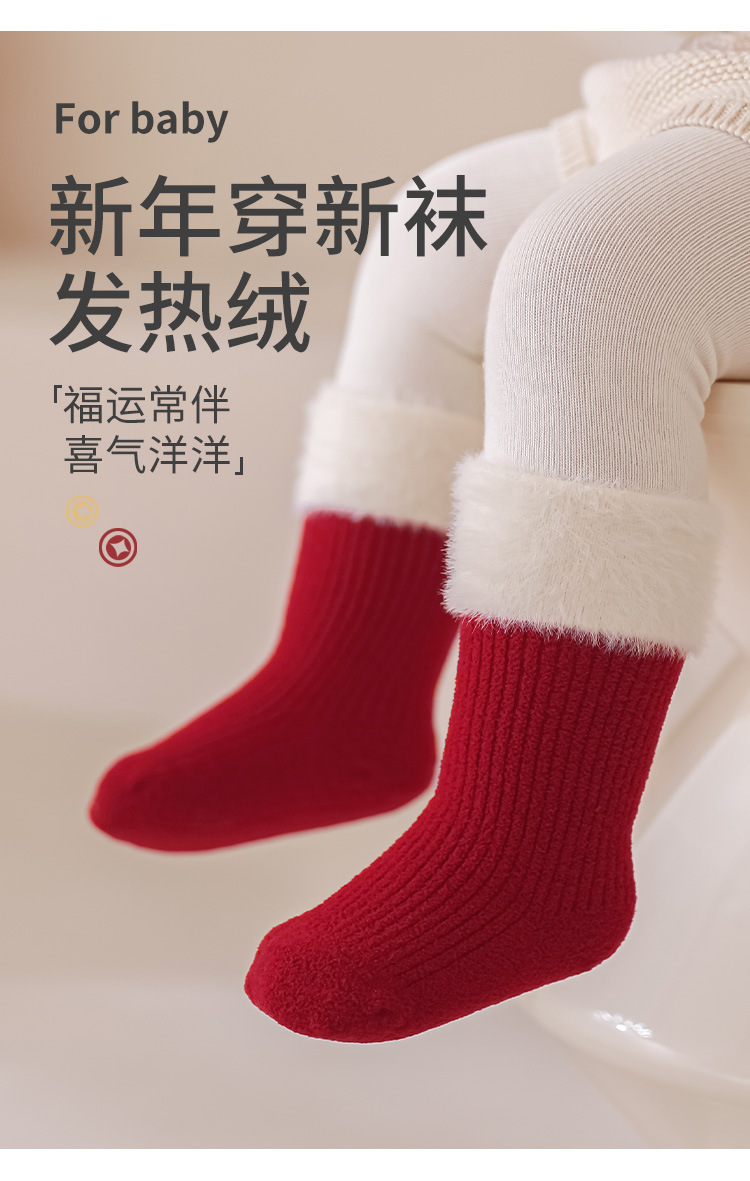 2024 겨울 새로운 아기 양말 큰 붉은 따뜻한 아기 새해 보름달 백일 뼈없는 튜브 양말스토어 가기