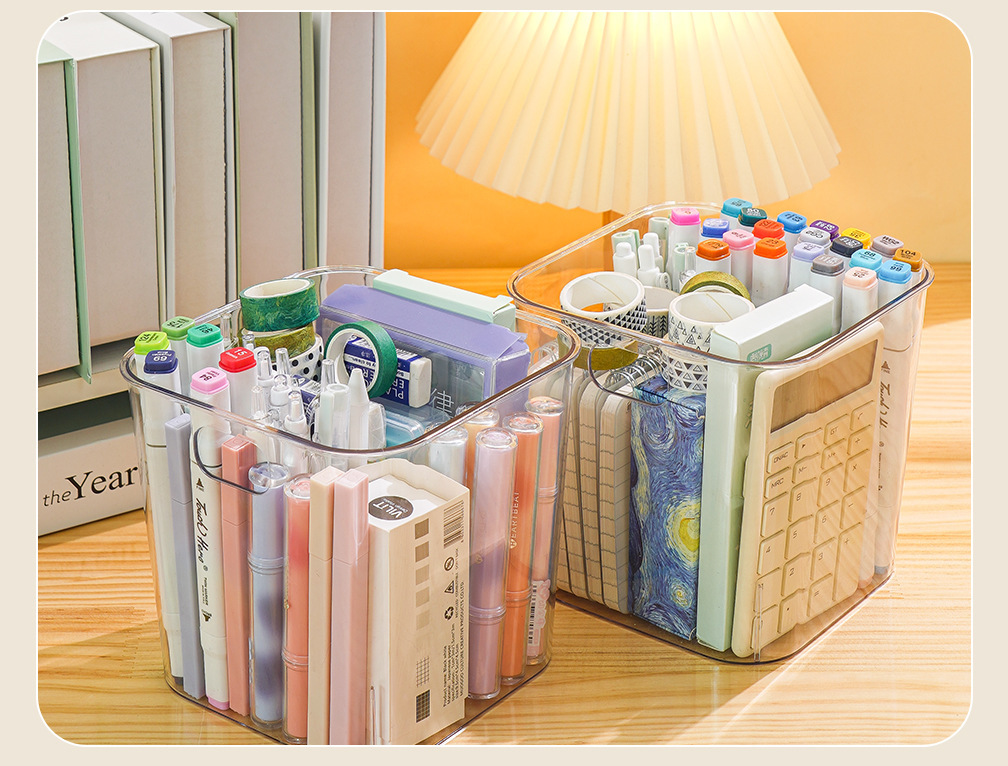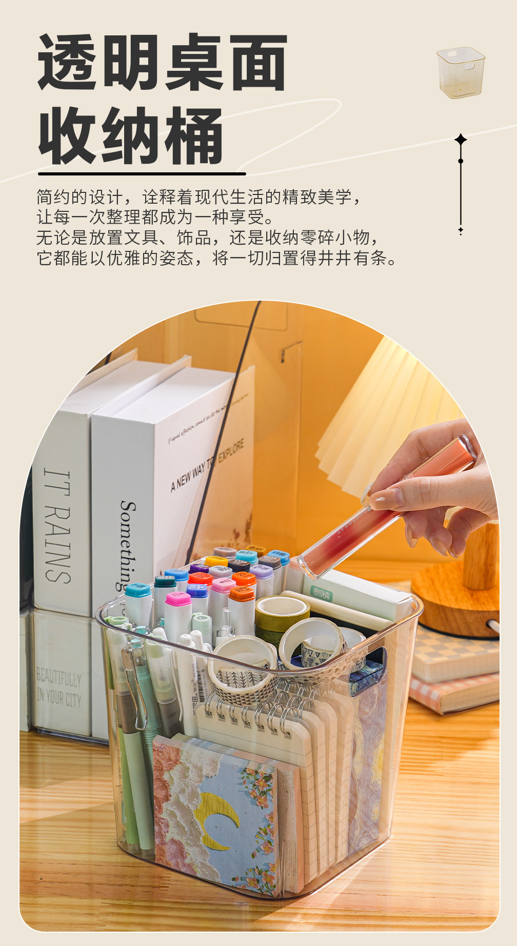 데스크탑 투명 스토리지 박스 학생 데스크 창조적 인 문구 화장품 피트 박스 고급 투명 스토리지 오피스스토어 가기