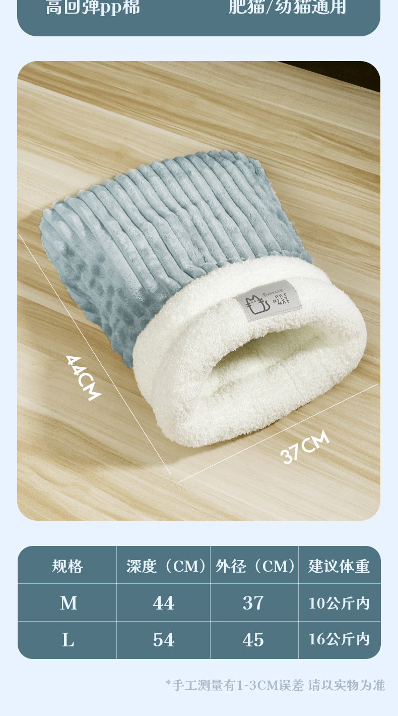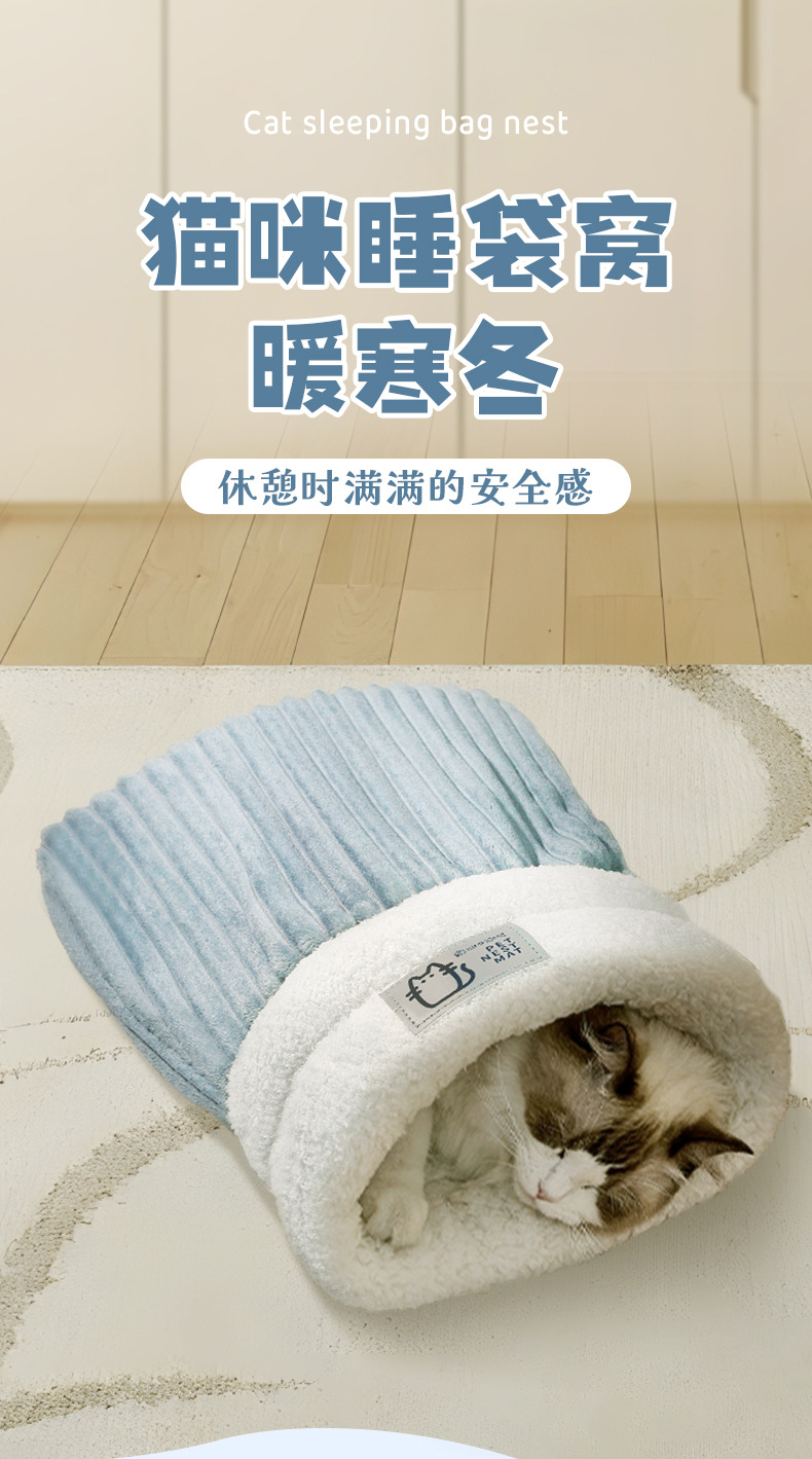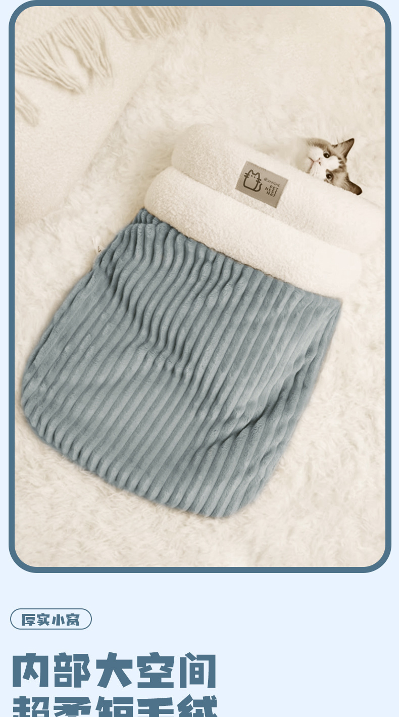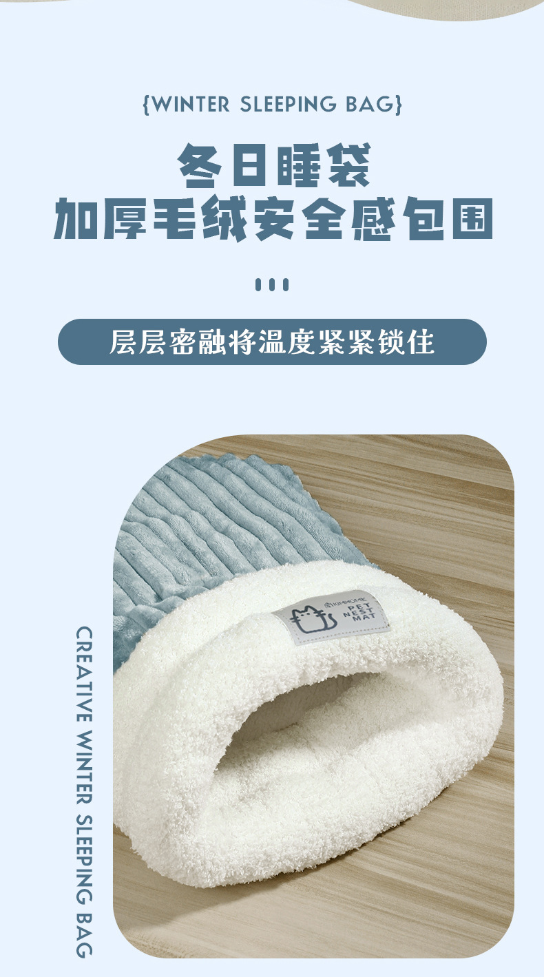 애완 동물 슬리핑 백 고양이 둥지 겨울 따뜻한 고양이 슬리핑 백 겨울 드릴링 구멍 반 닫힌 침대 새끼 고양이 잠자는 애완 동물 둥지