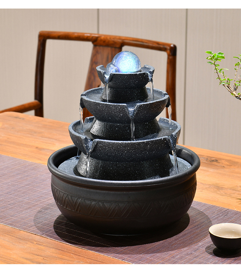 돈을 재활용하기위한 8 가지 방향 물 포춘 휠 거꾸로 물 장식품을 움직여 둥근 크리스탈 볼 부 분수를 움직입니다.