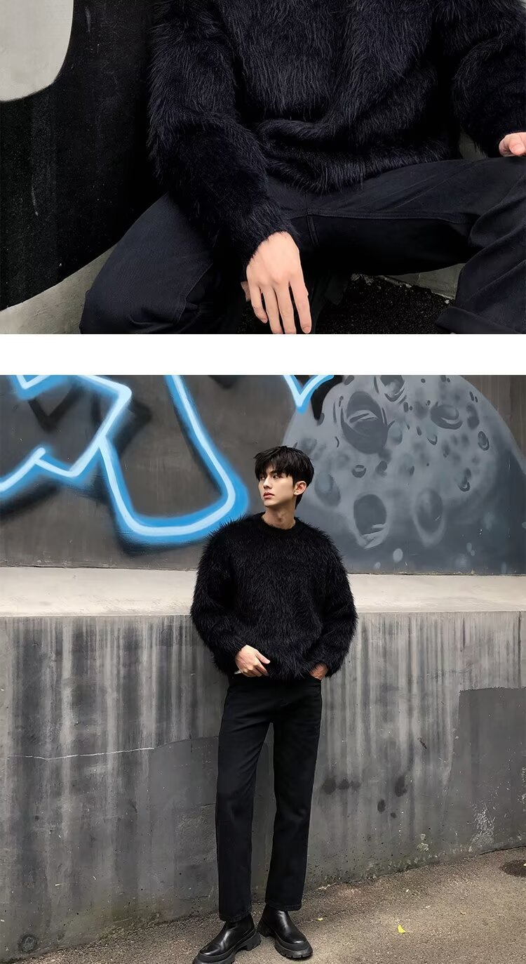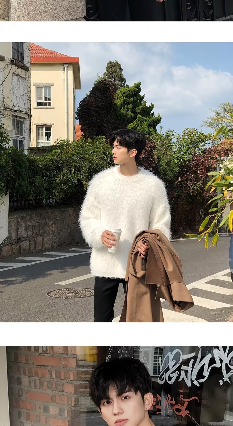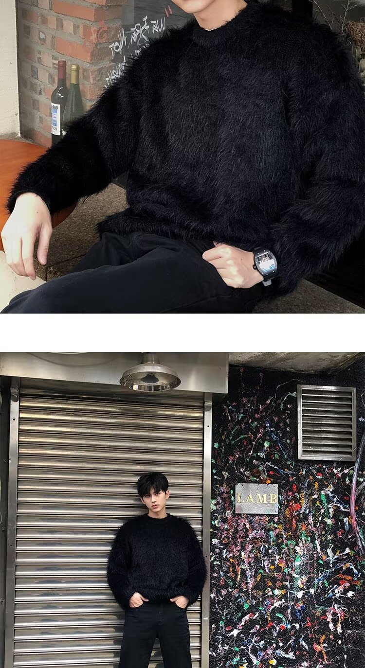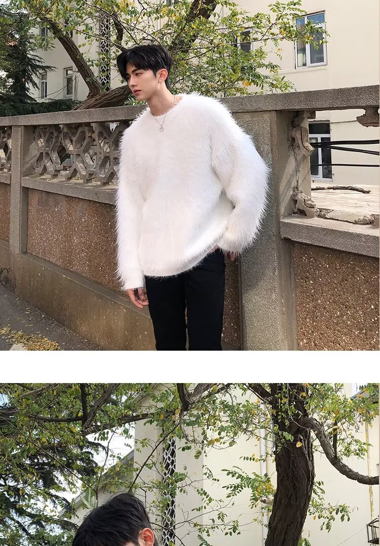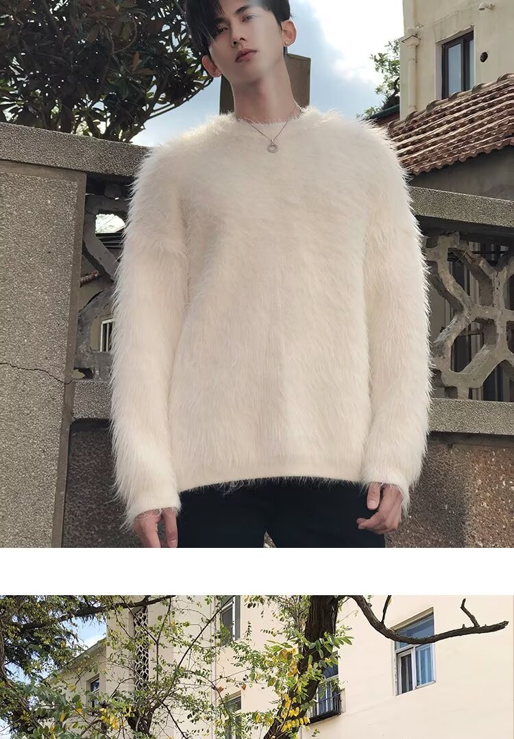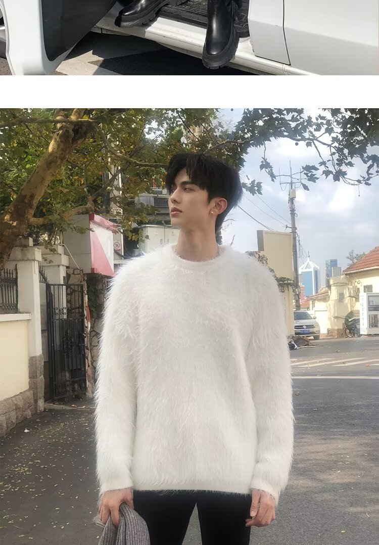 밍크 플러시 소프트 왁스 게으른 스타일 스웨터 남성 가을 및 겨울 새로운 느슨한 캐주얼 스웨터 외부 탑