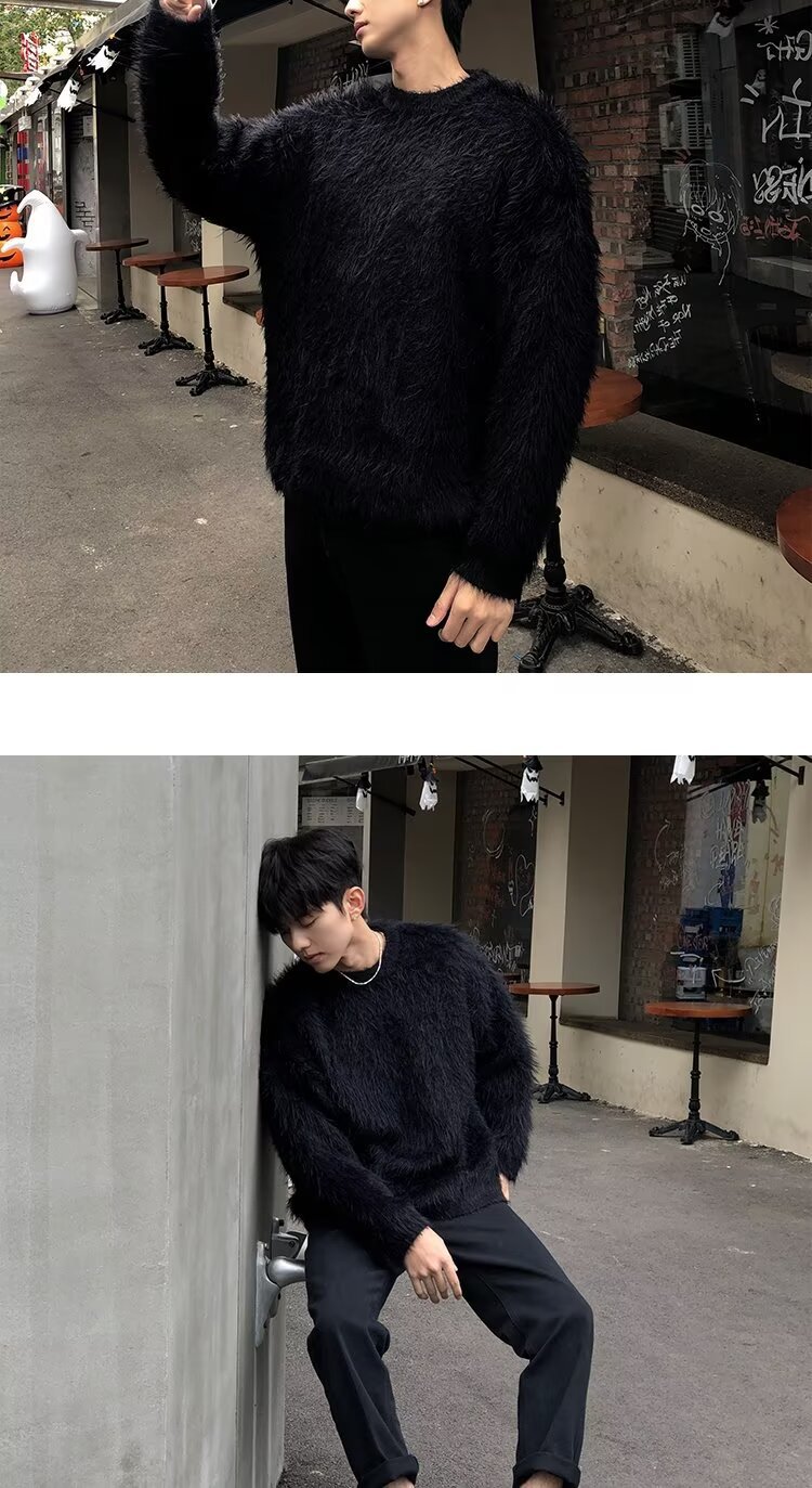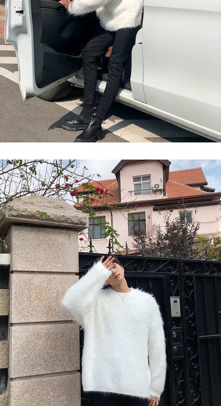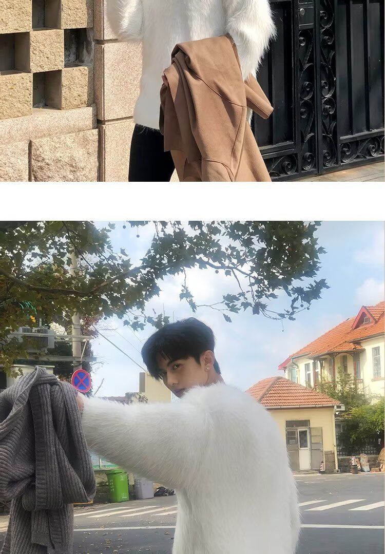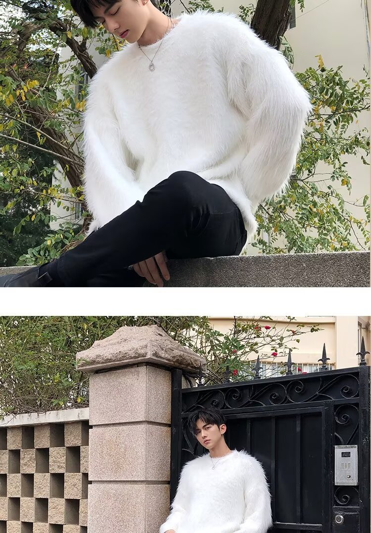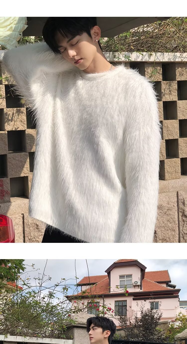 밍크 플러시 소프트 왁스 게으른 스타일 스웨터 남성 가을 및 겨울 새로운 느슨한 캐주얼 스웨터 외부 탑
