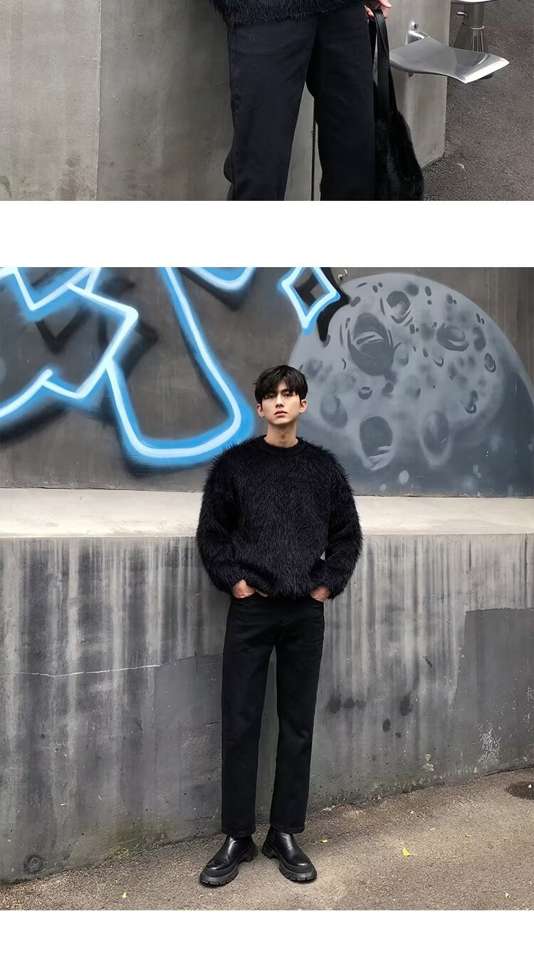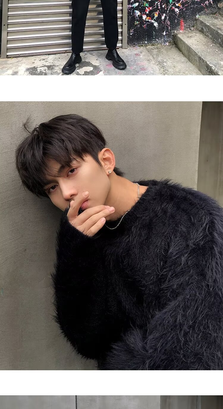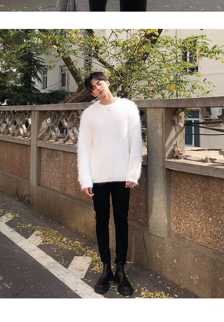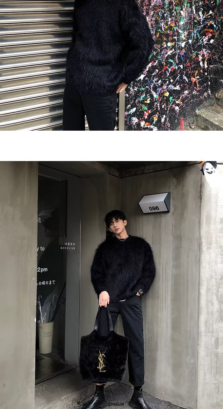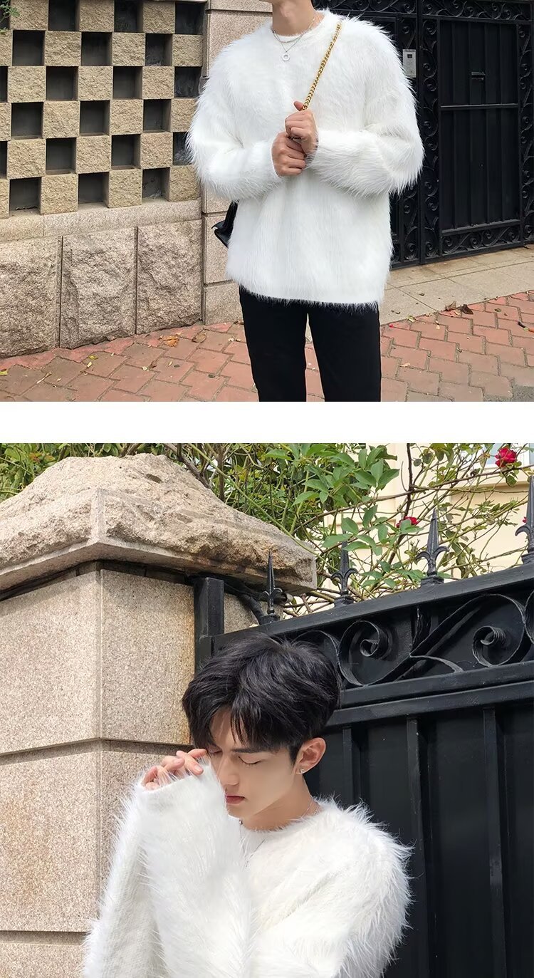 밍크 플러시 소프트 왁스 게으른 스타일 스웨터 남성 가을 및 겨울 새로운 느슨한 캐주얼 스웨터 외부 탑