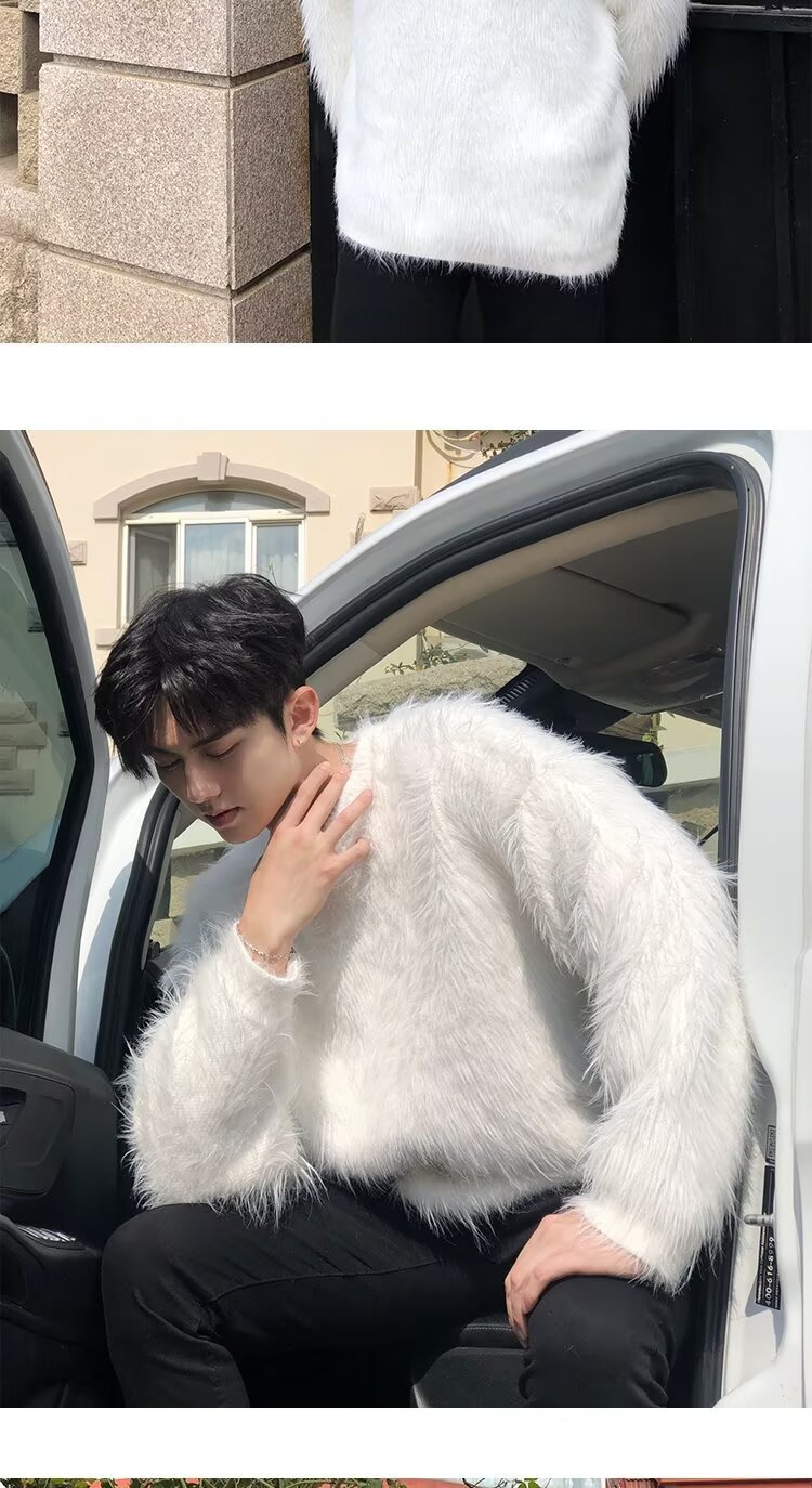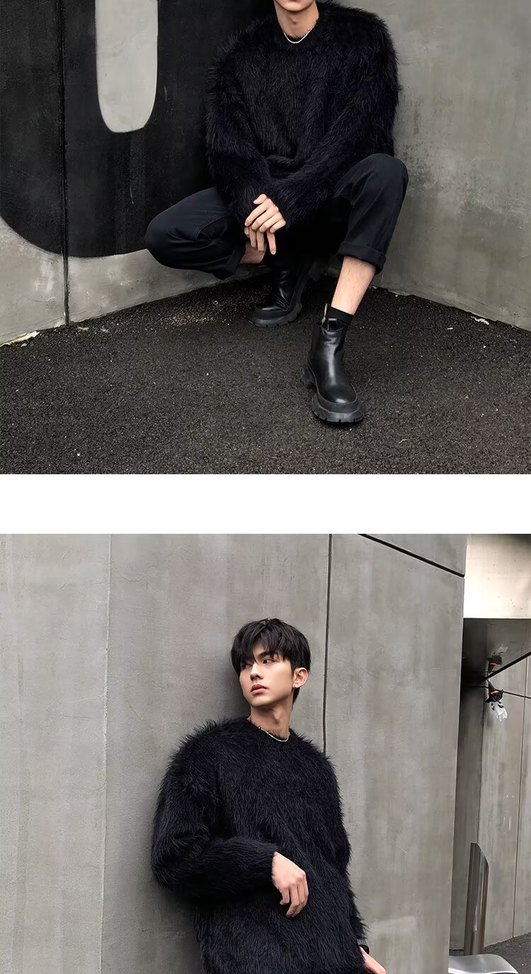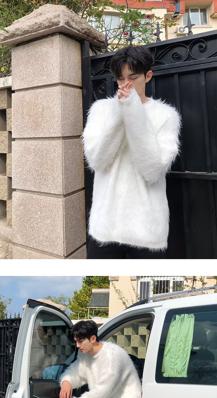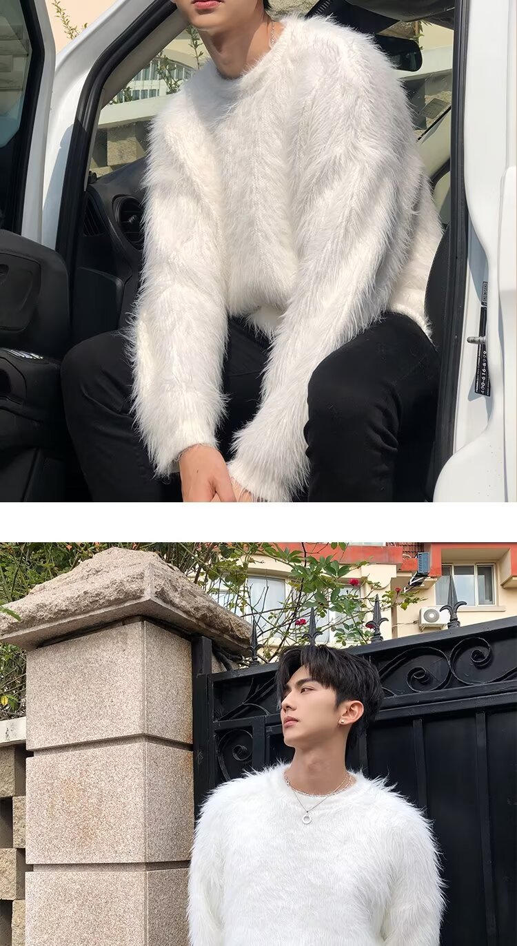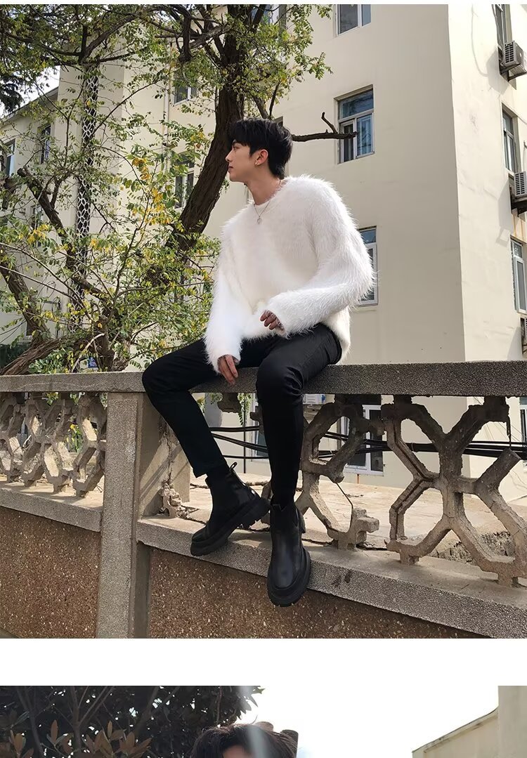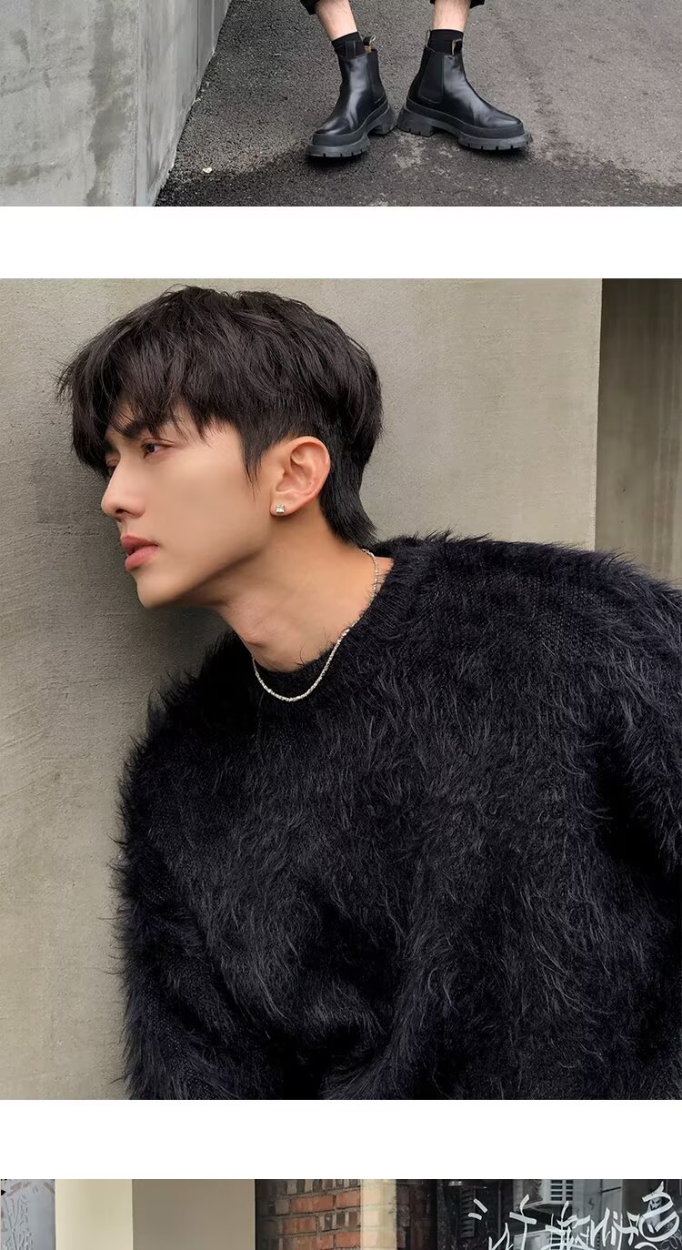 밍크 플러시 소프트 왁스 게으른 스타일 스웨터 남성 가을 및 겨울 새로운 느슨한 캐주얼 스웨터 외부 탑