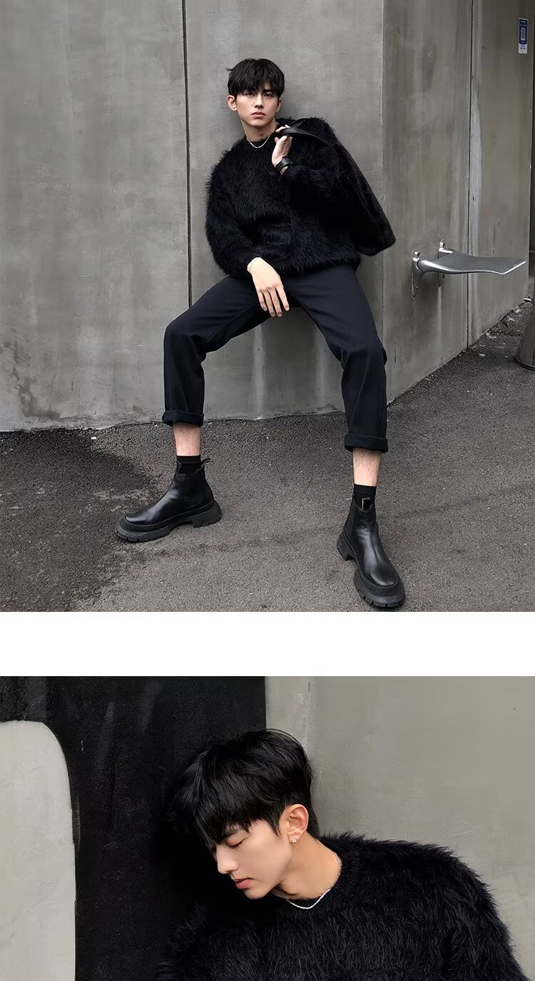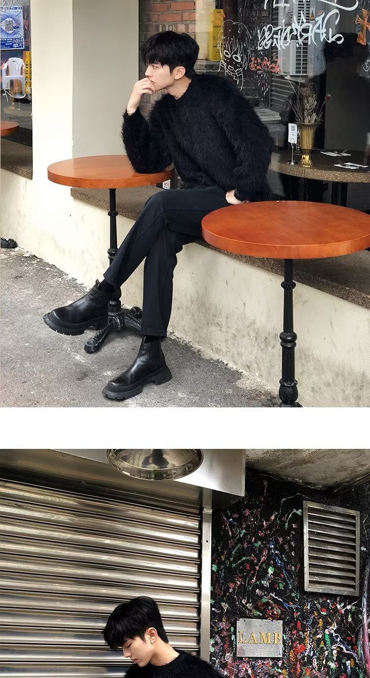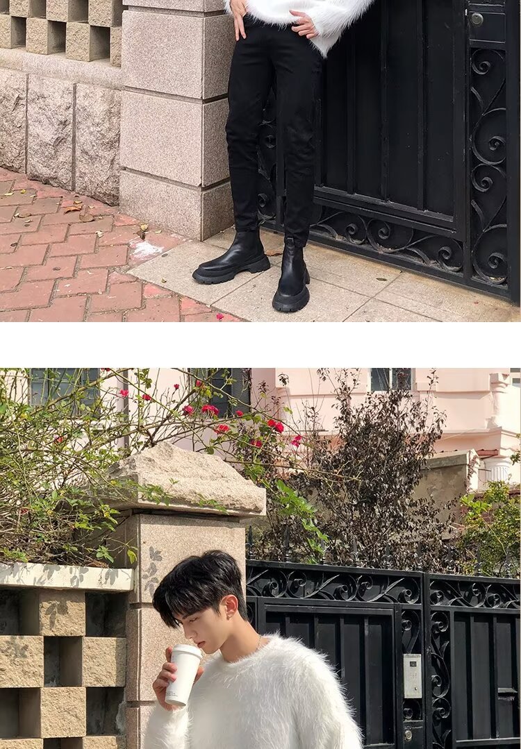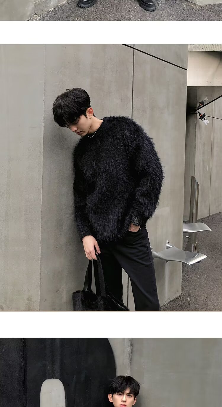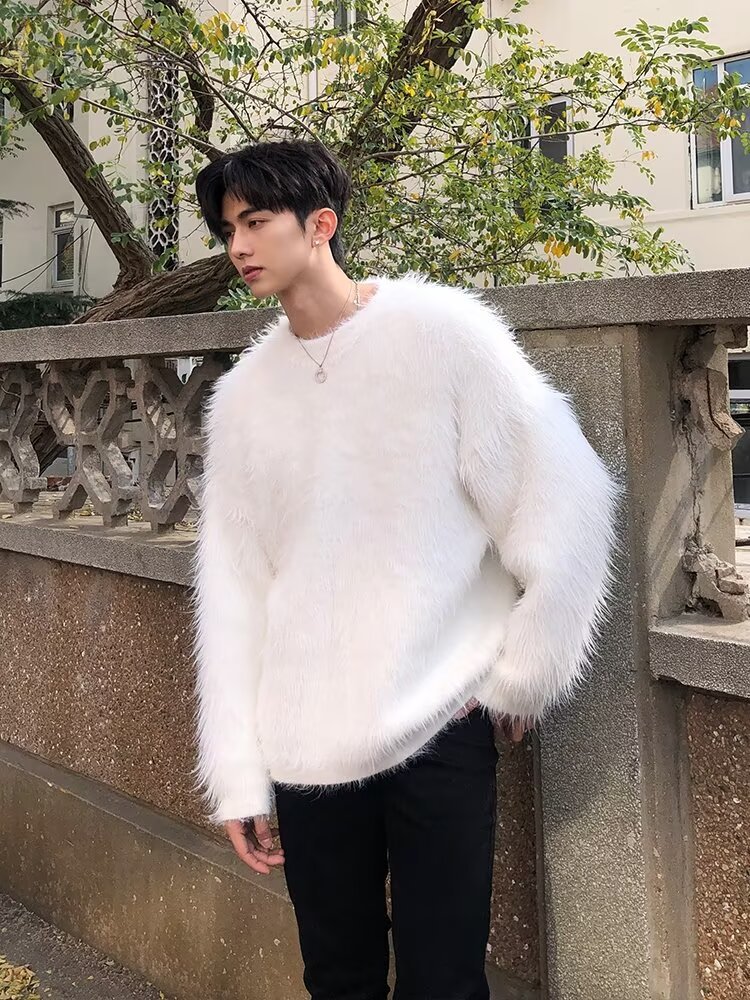 밍크 플러시 소프트 왁스 게으른 스타일 스웨터 남성 가을 및 겨울 새로운 느슨한 캐주얼 스웨터 외부 탑