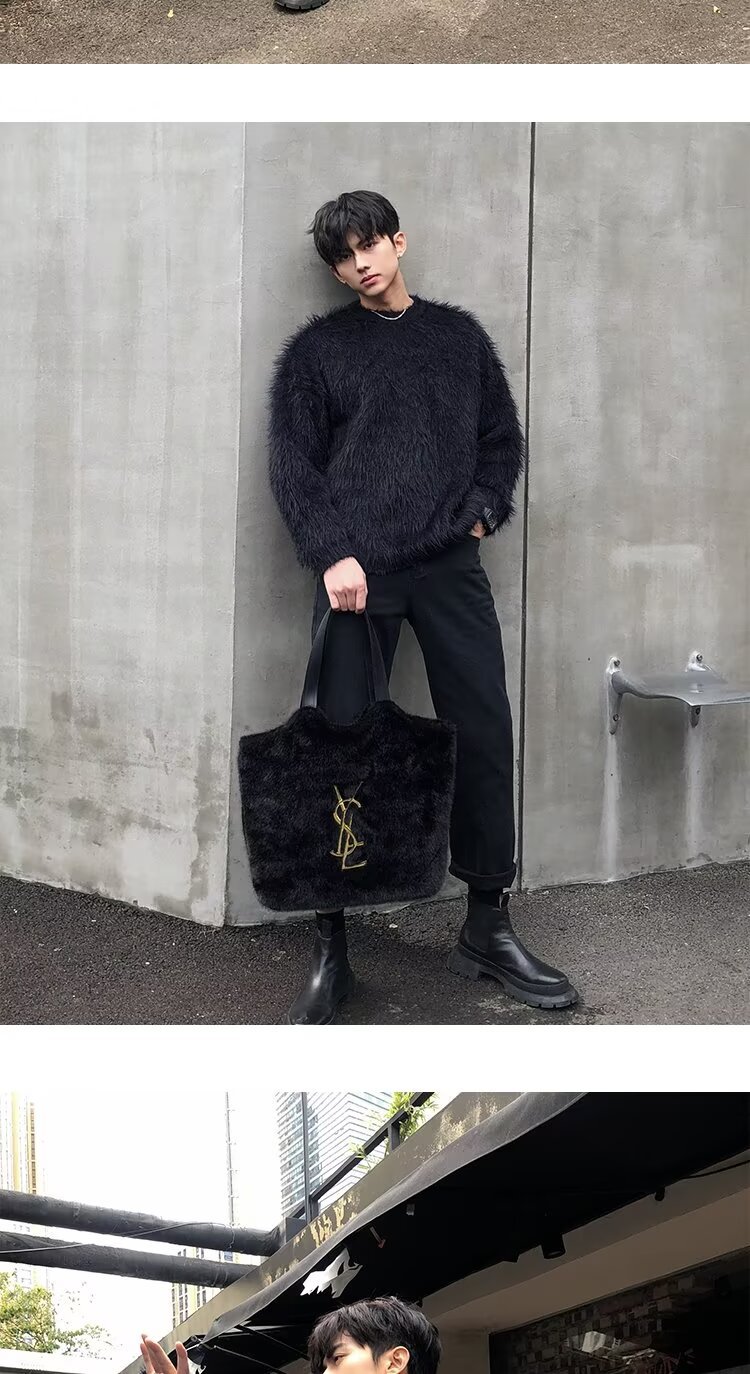 밍크 플러시 소프트 왁스 게으른 스타일 스웨터 남성 가을 및 겨울 새로운 느슨한 캐주얼 스웨터 외부 탑스토어 가기