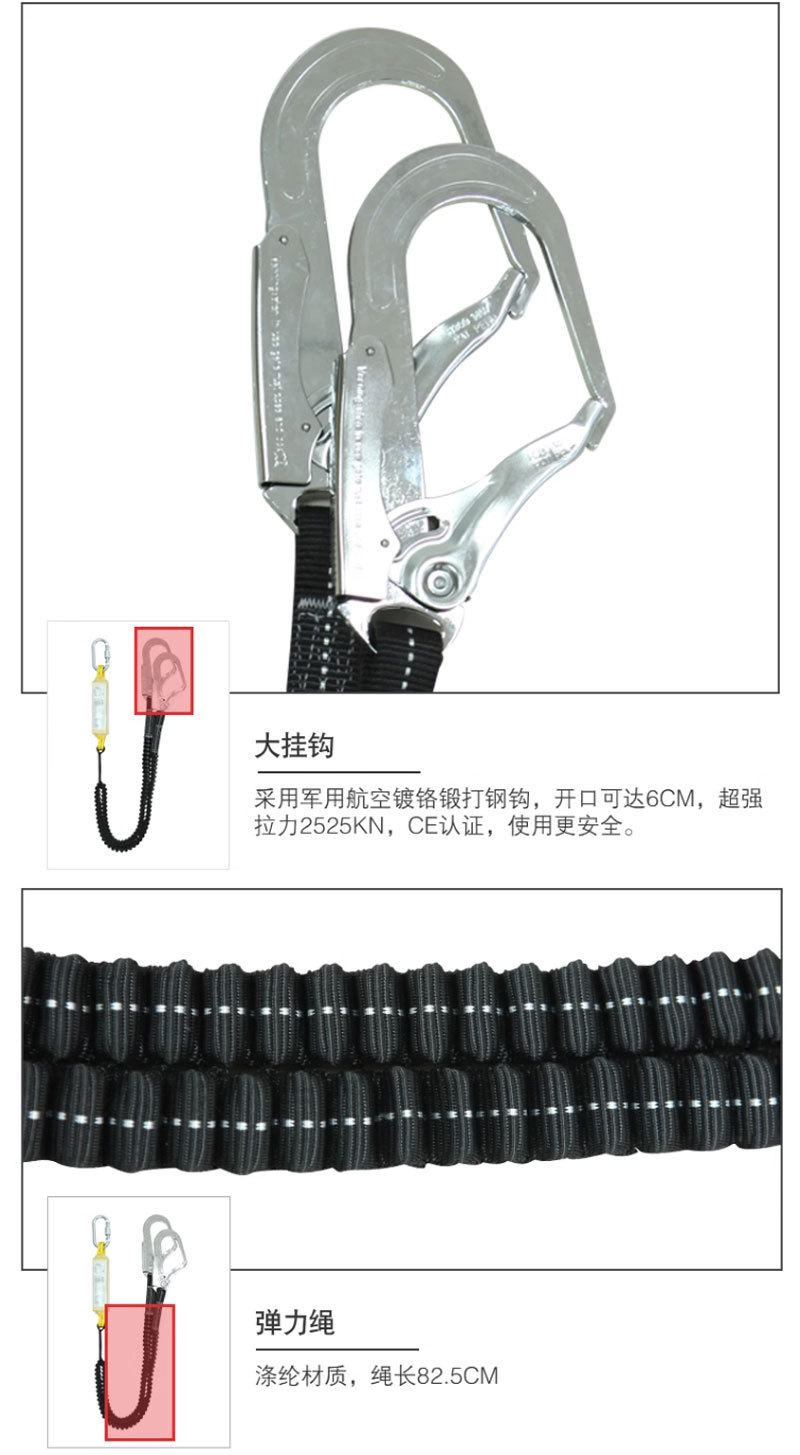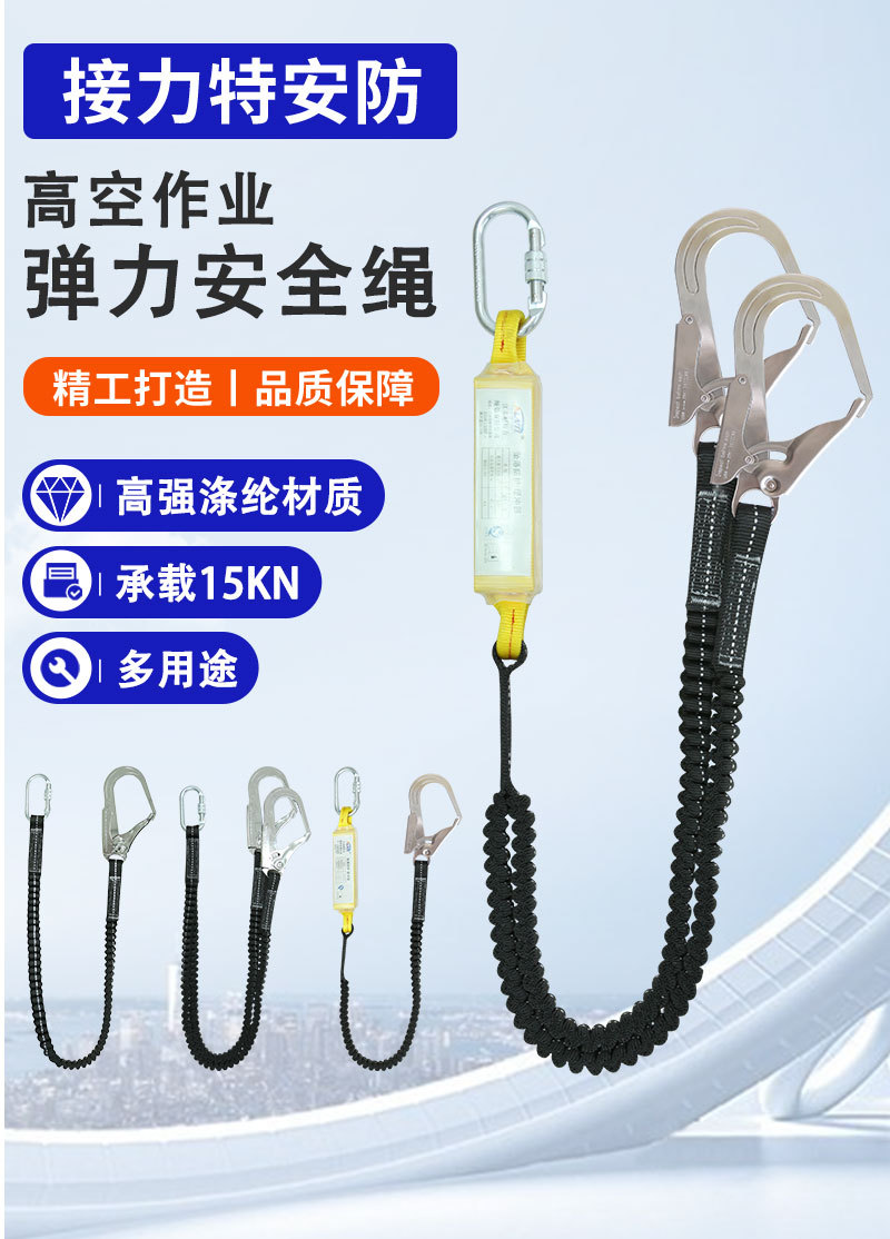 국가 표준 고고도 보호 폴리 에스테르 탄성 안전 로프 야외 작업 후크 안전 벨트 낙하 방지 버퍼 안전 벨트