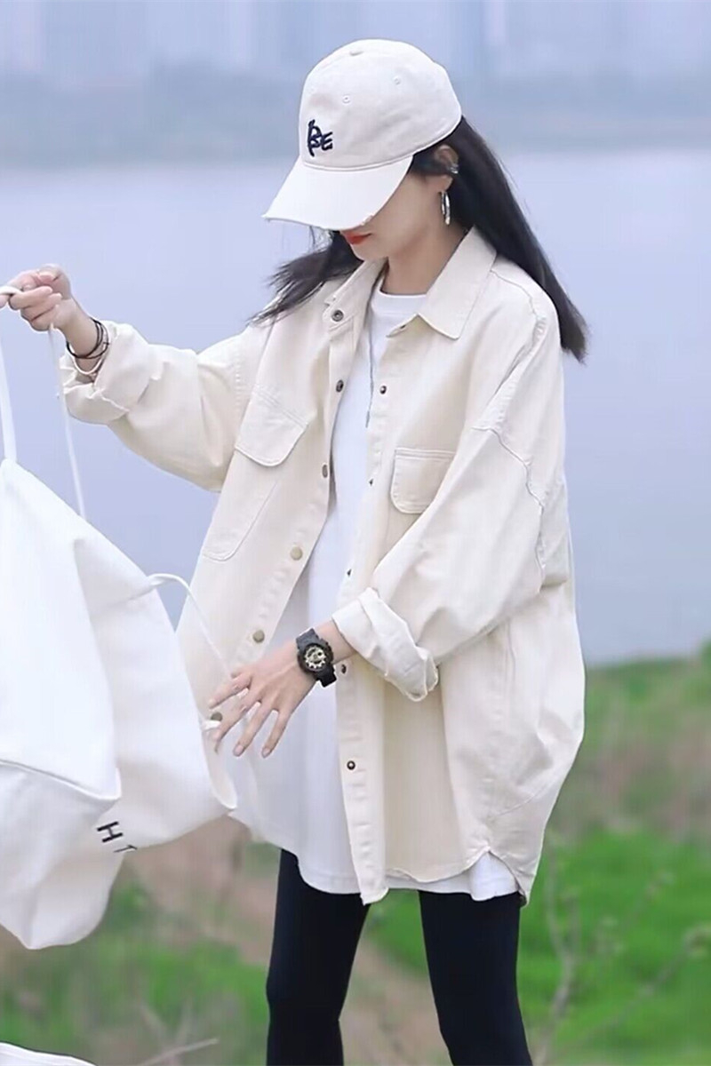 캐주얼 셔츠 코트 여성 한국 스타일 봄과 가을 새로운 도착 작은 남성 폭발 느슨한 틈새 디자인 센스 재킷 탑스토어 가기