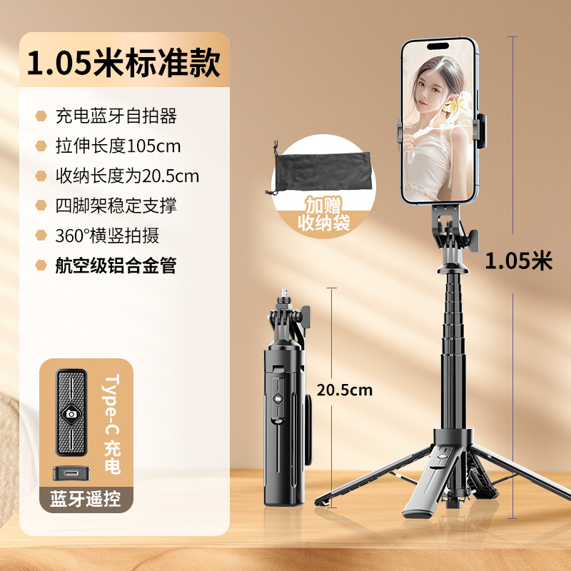 2024 새로운 휴대 전화 셀카 스틱 GoPro 카메라 블루투스 휴대 전화 홀더와 호환되는 사각 대를 여는 하나의 키스토어 가기