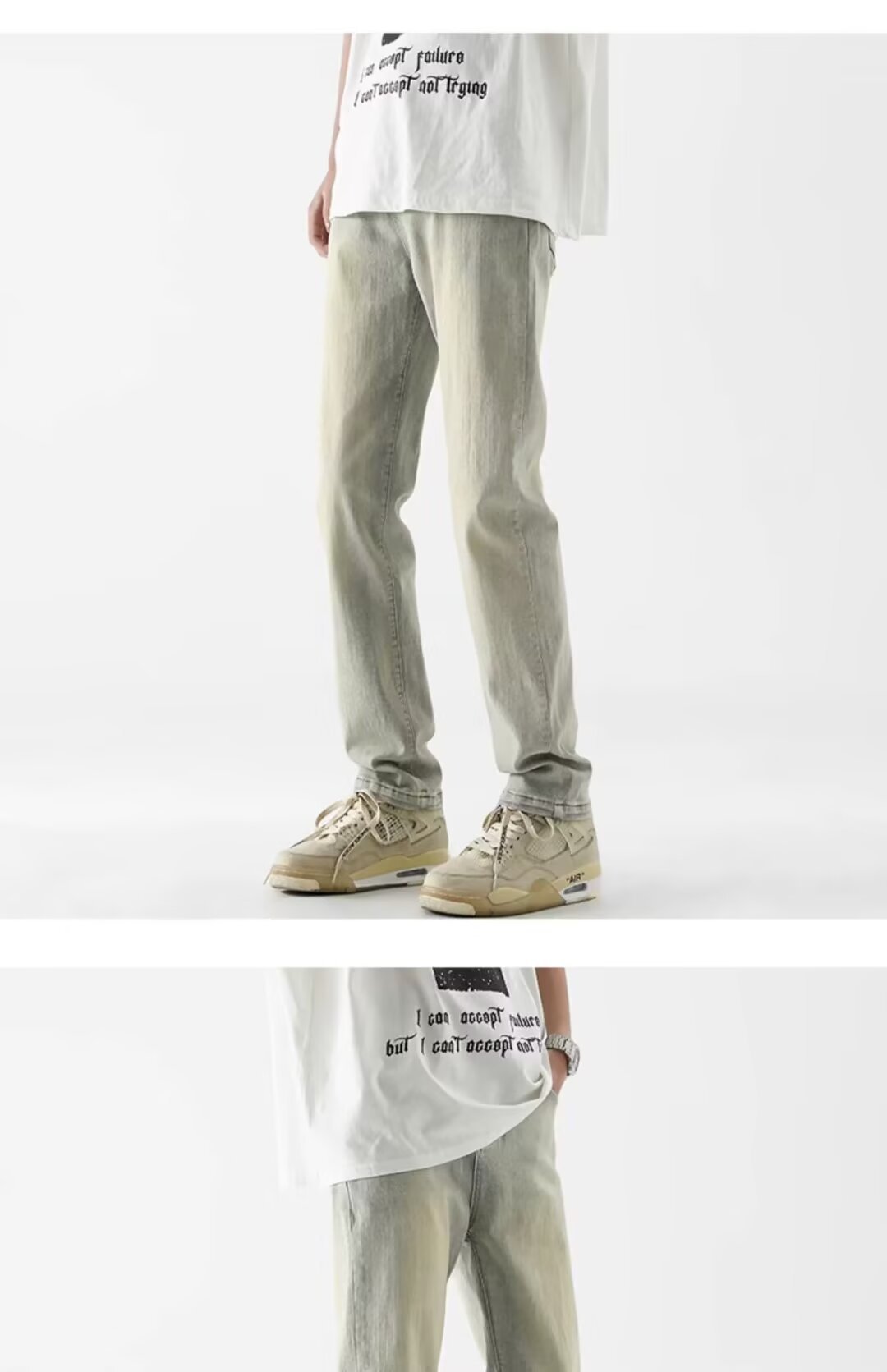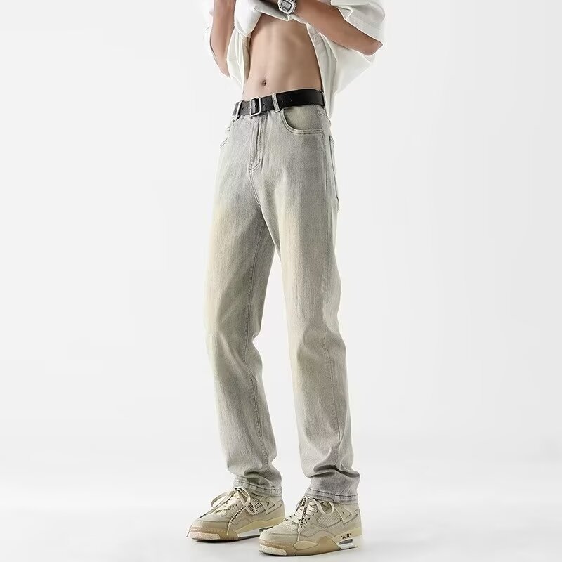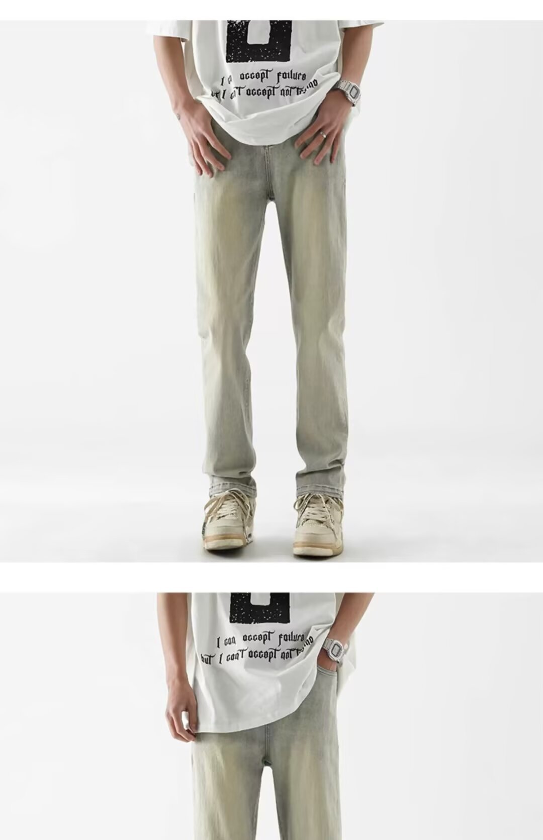 세탁 청바지 남성 2024 새로운 패션 브랜드 미국 스타일 복고풍 느슨한 스트레이트 마이크로 캐주얼 와이드 레그 롱 트렌디 바지