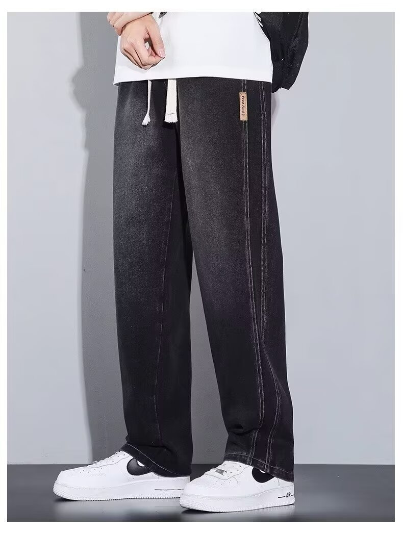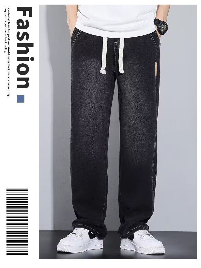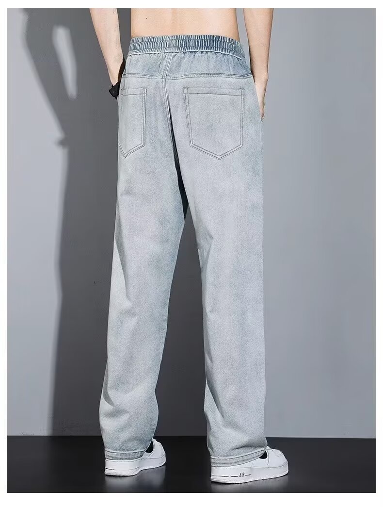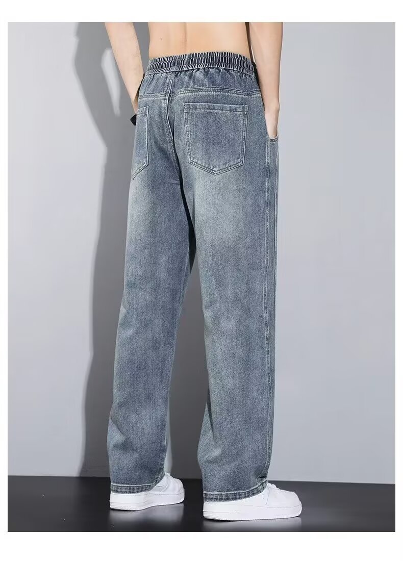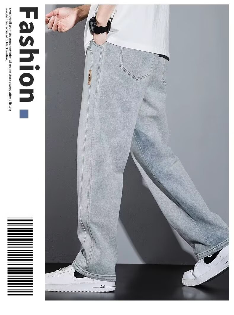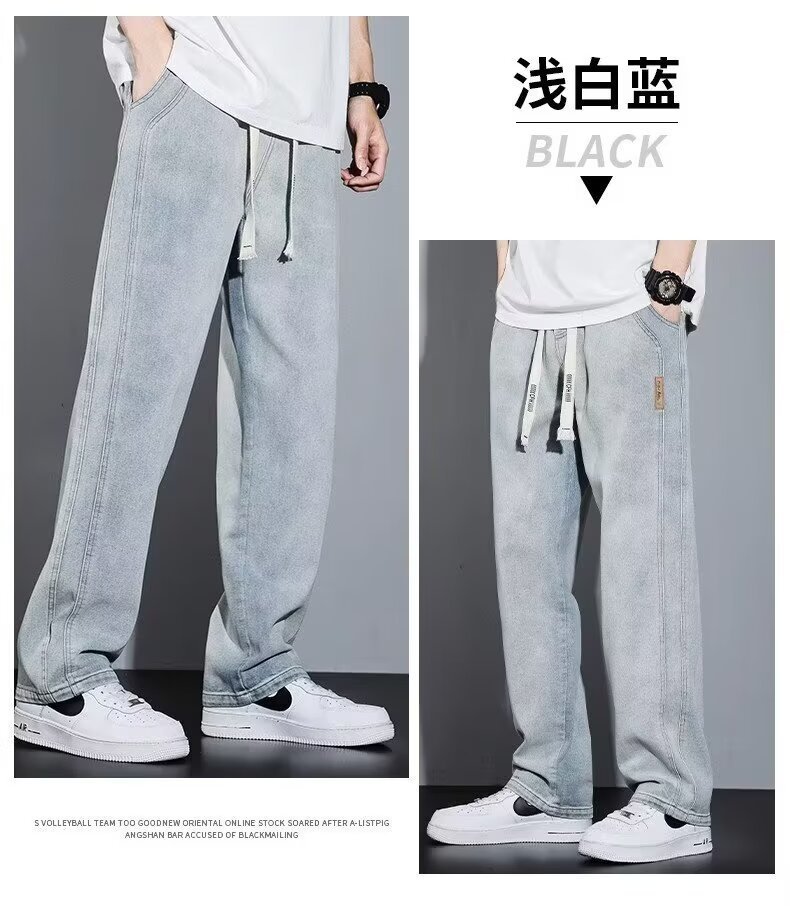 남자 봄과 여름 새로운 느슨한 스트레이트 유행 캐주얼 올 매치 바지 세탁 캐주얼 바지