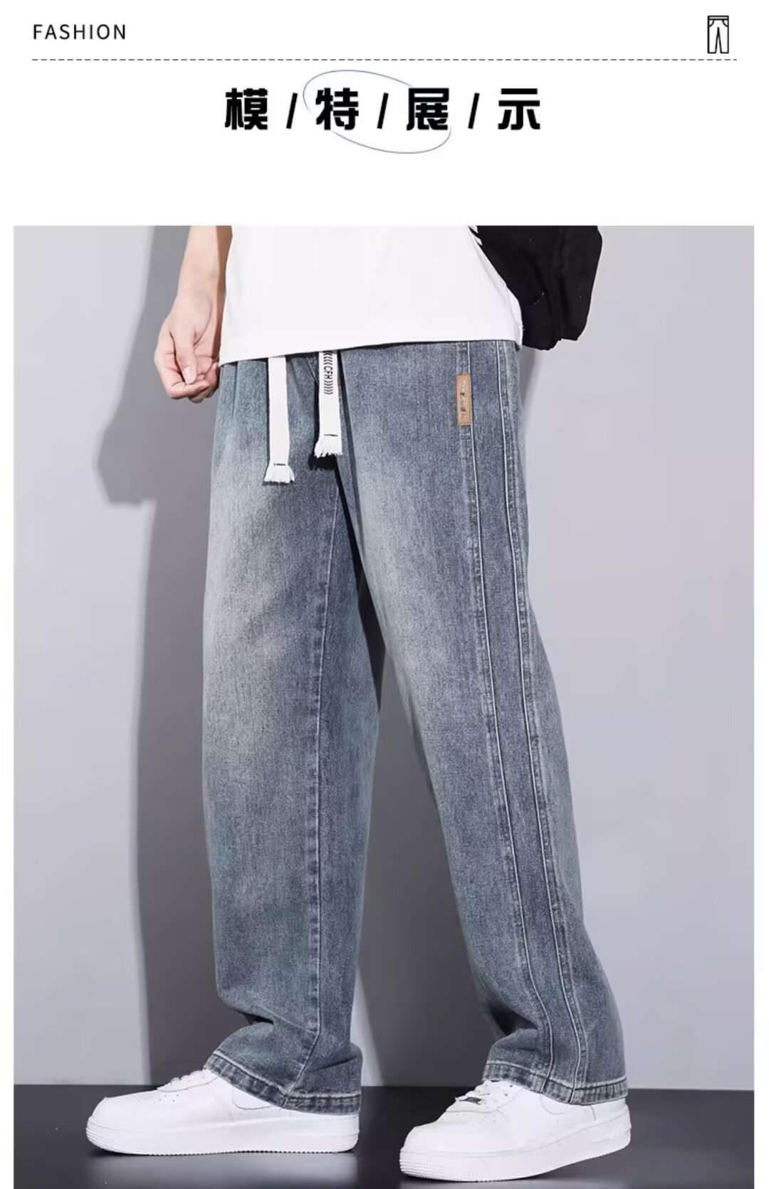 남자 봄과 여름 새로운 느슨한 스트레이트 유행 캐주얼 올 매치 바지 세탁 캐주얼 바지스토어 가기