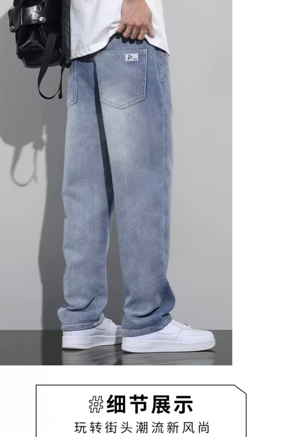 아메리칸 스타일 레트로 스타 패턴 청바지 남성 루즈 스트레이트 봄과 가을 새로운 패션 브랜드 하이 스트리트 워시 와이드 레그 바지스토어 가기