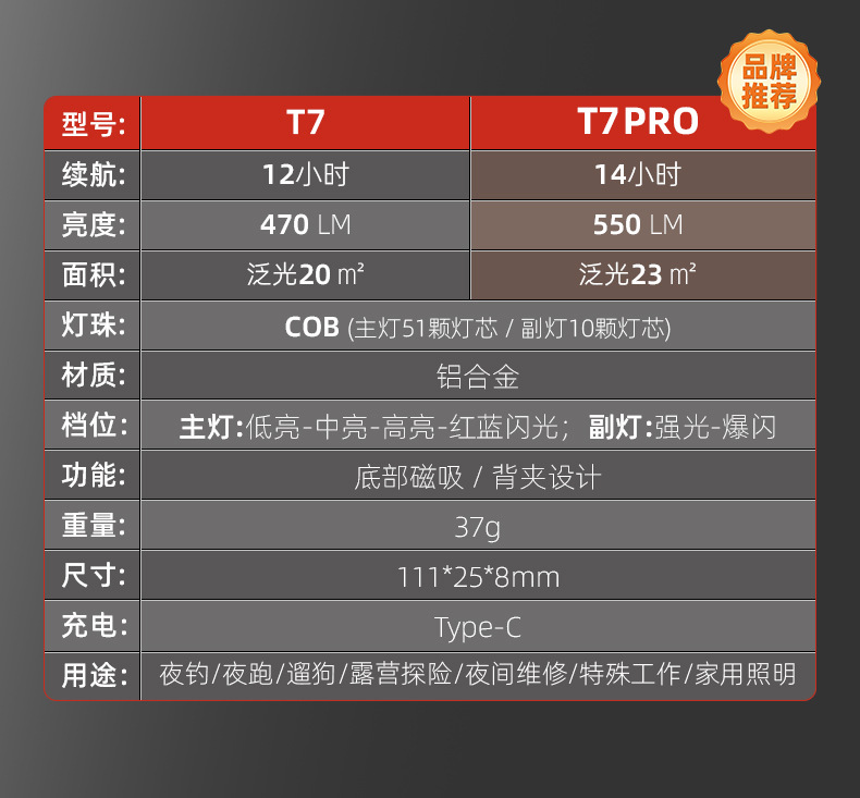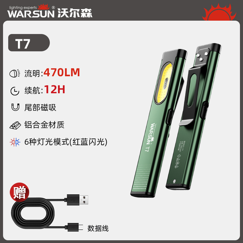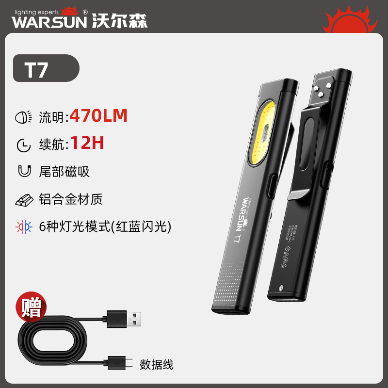월슨 T7pro 손전등 강력한 빛 충전식 초강력 야외 장거리 휴대용 미니 라이트 초강력 LED 미니 작업등