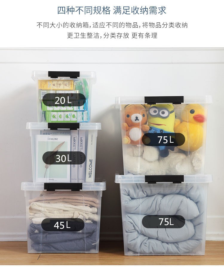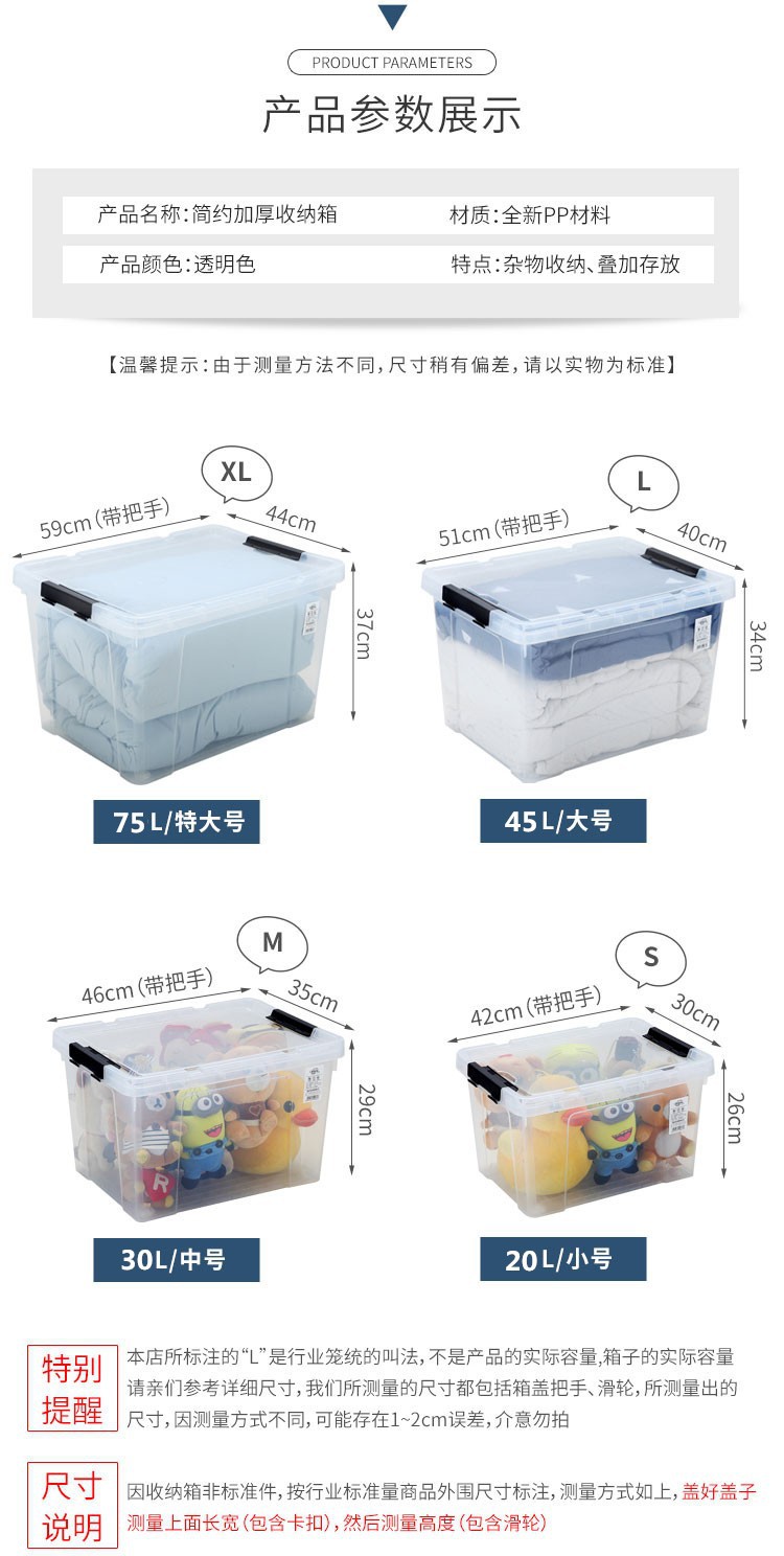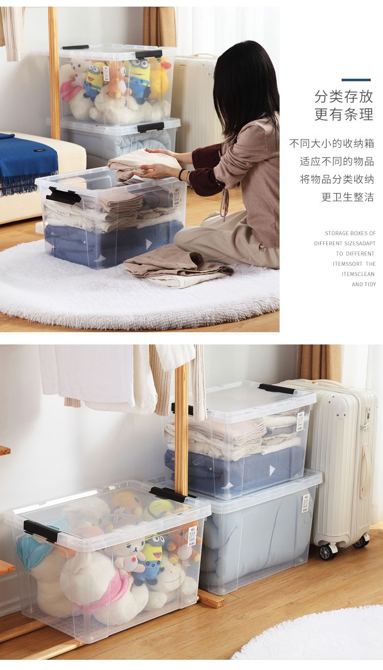 두꺼운 저장 상자 저장 상자 조직 상자 초대형 플라스틱 투명한 가정용 옷 버클 식품 보관 상자스토어 가기