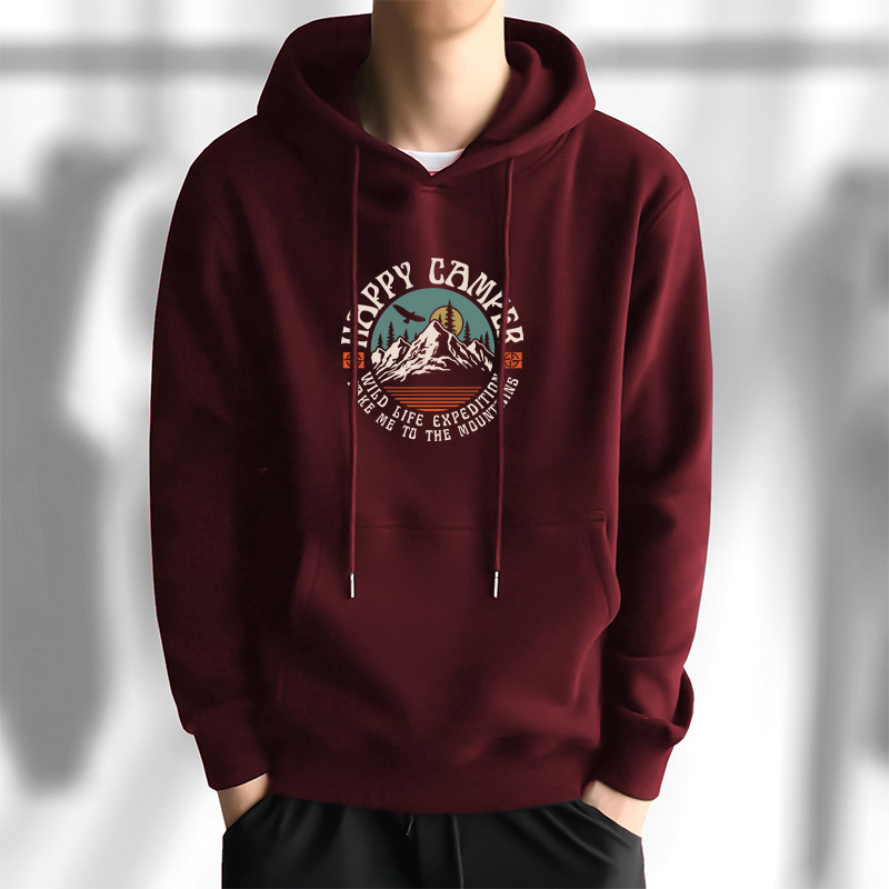 • 버건디 후드 스웨트셔츠 레귤러 스타일-919【GL】