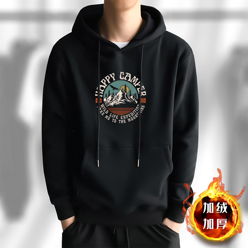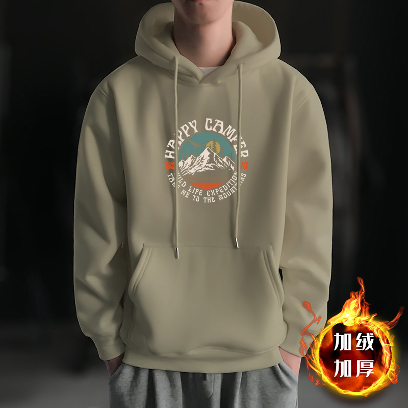 무거운 후드 스웨터 남자의 가을과 겨울 기모 패션 브랜드 탑 봄과 가을 후드 코트 미국 커플 코트