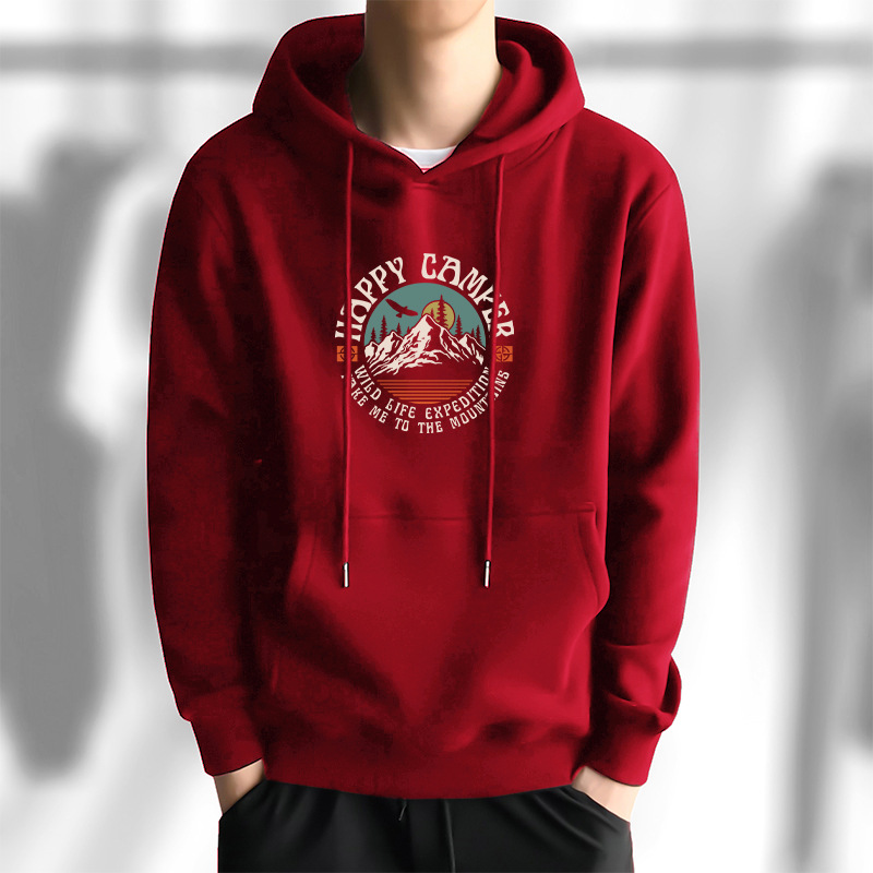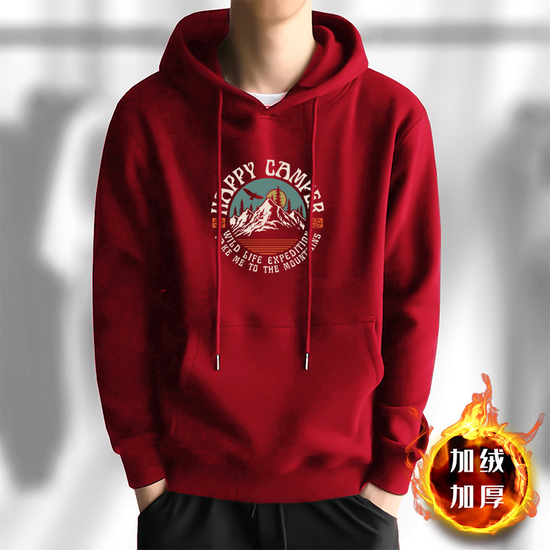 • 버건디 후드 스웨트셔츠 플러스 플리스 스타일-919【GL】