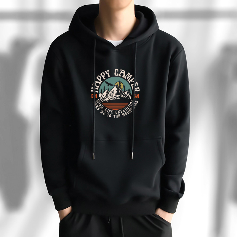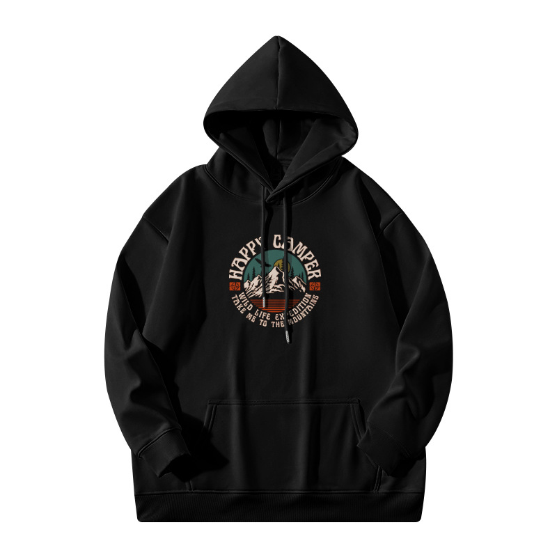 • 블랙 후드 스웨트셔츠 레귤러 스타일-919【GL】