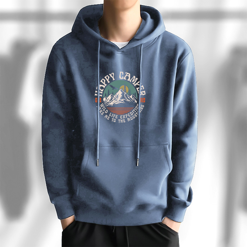 • 그레이 블루 후드 스웨트셔츠 플러스 플리스 스타일-919【GL】