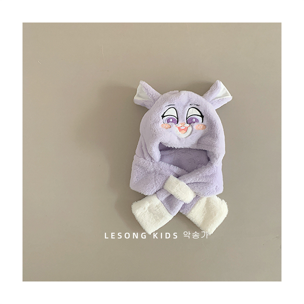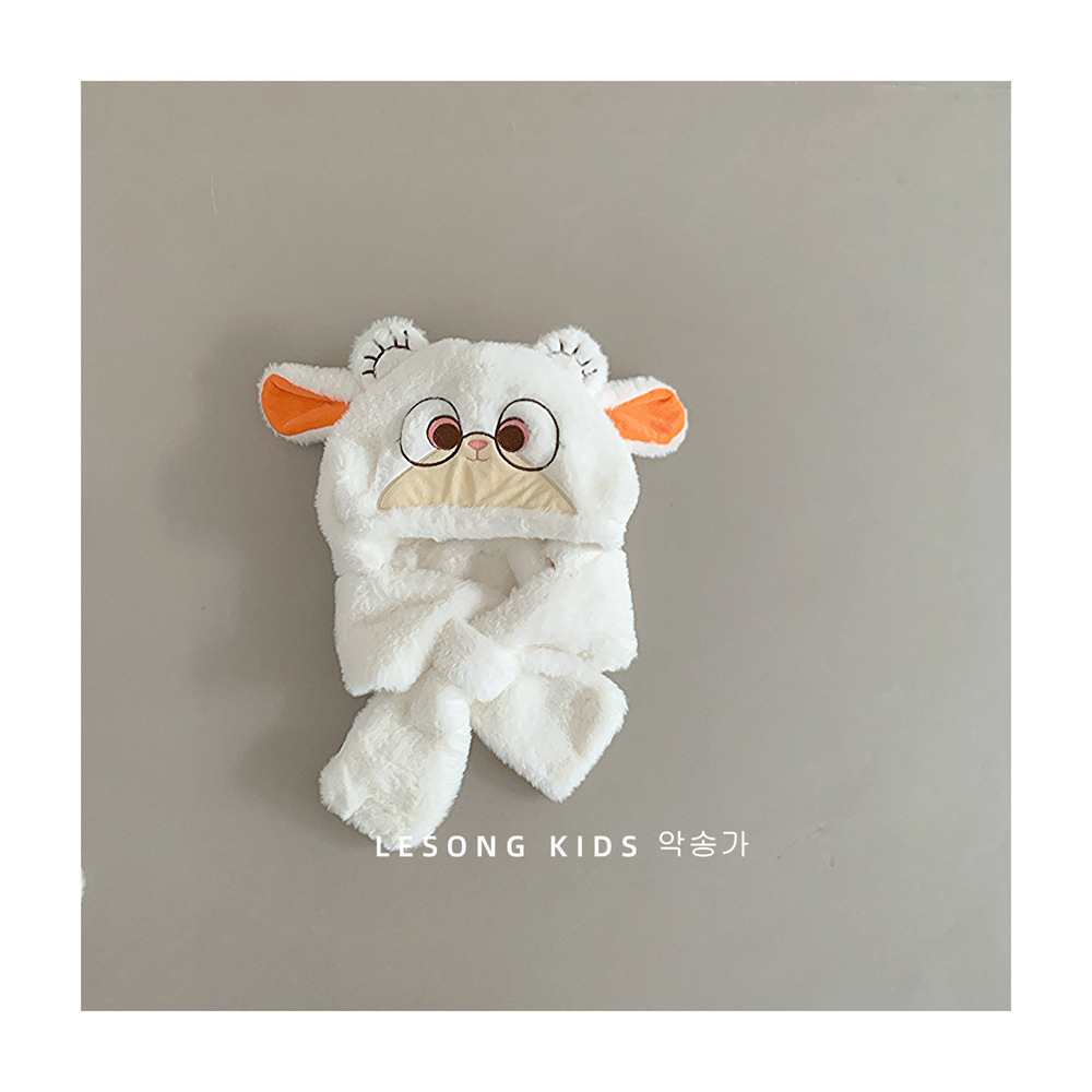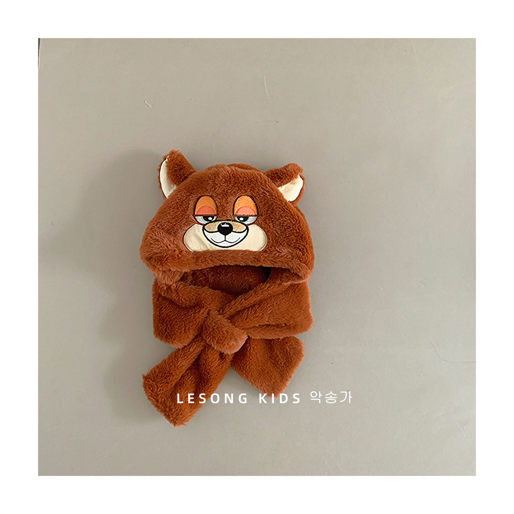 韩系可爱小动物秋冬保暖儿童毛绒一体帽