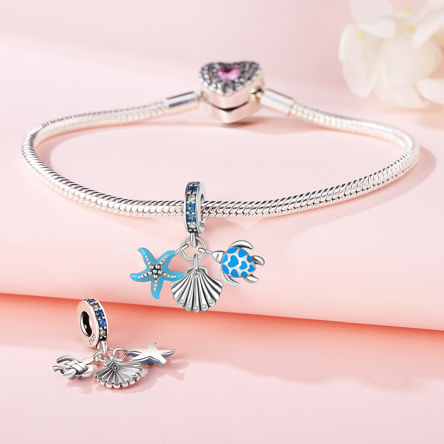 원래 925 스털링 실버 바다 바람 거북 껍질 피쉬 테일 펜던트 DIY 액세서리 팔찌 끈 장식품 국경 폭발