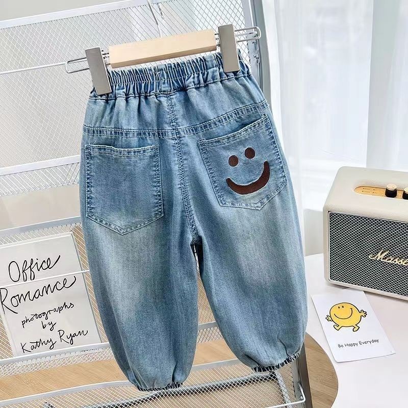 남학생 청바지 텐셀 어린이 모기 방지 바지 여름 얇은 소년 바지 어린이 아기 서양식 캐주얼 바지 없음