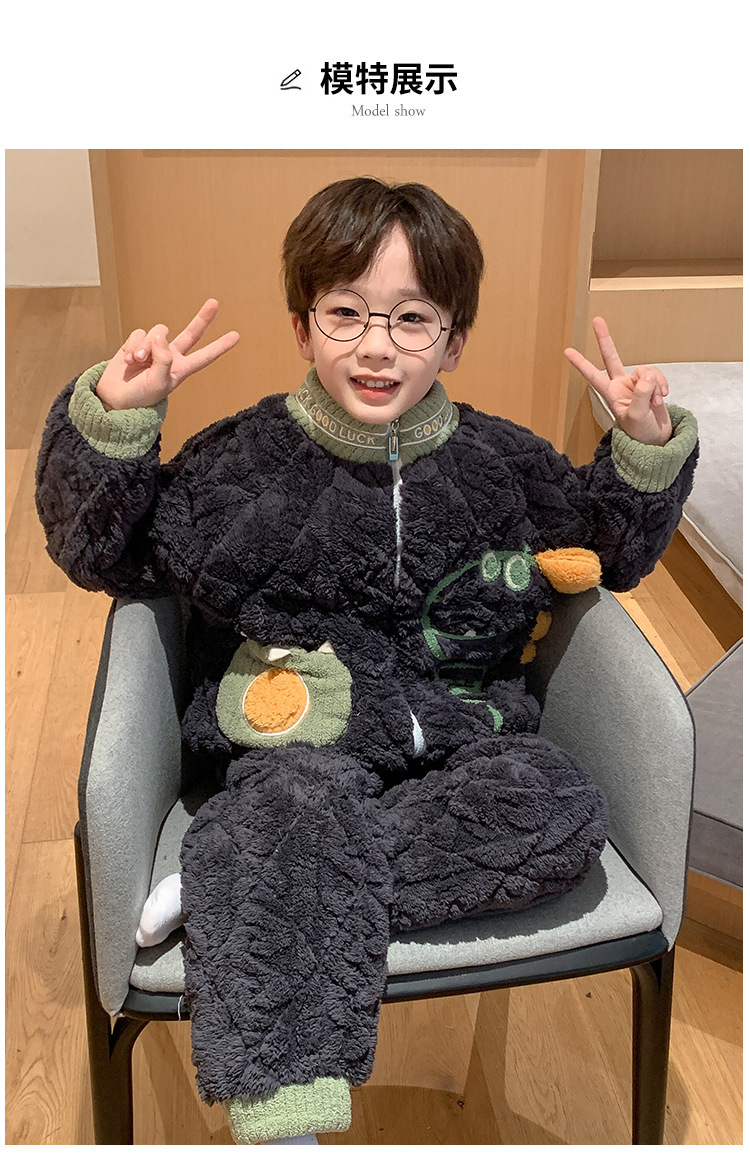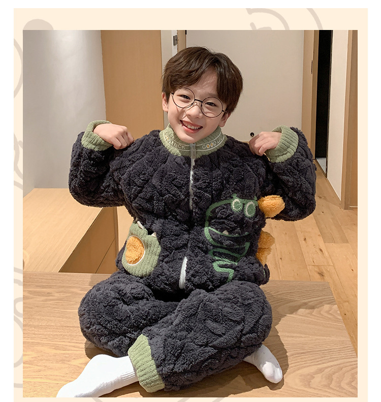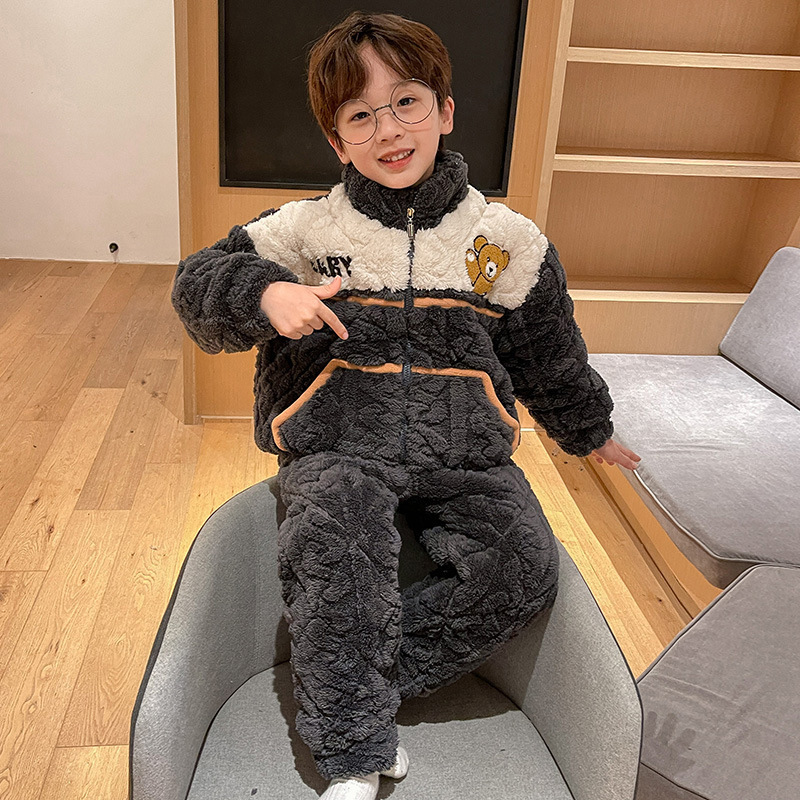 남학생 잠옷 겨울옷 3 층 기모 두꺼운 면 2024 새로운 아기 만화 어린이 큰 어린이 집 옷스토어 가기