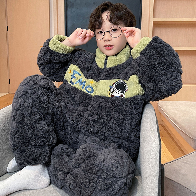 남학생 잠옷 겨울옷 3 층 기모 두꺼운 면 2024 새로운 아기 만화 어린이 큰 어린이 집 옷