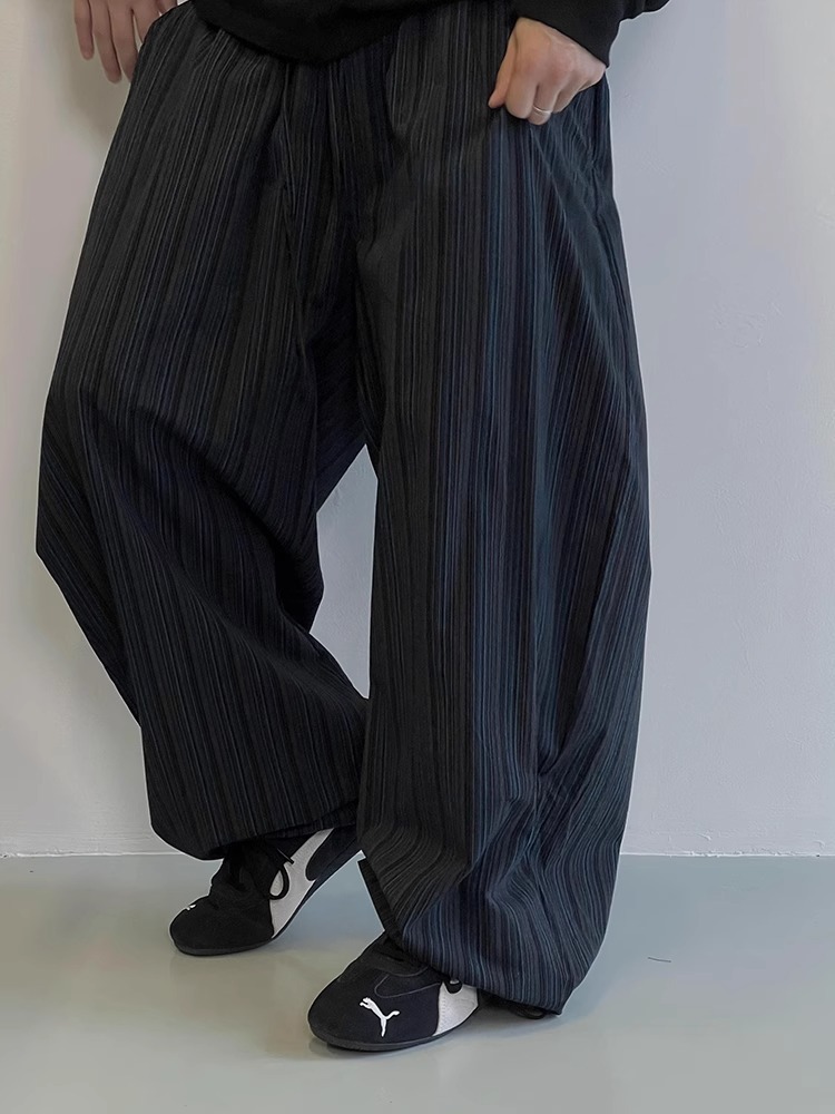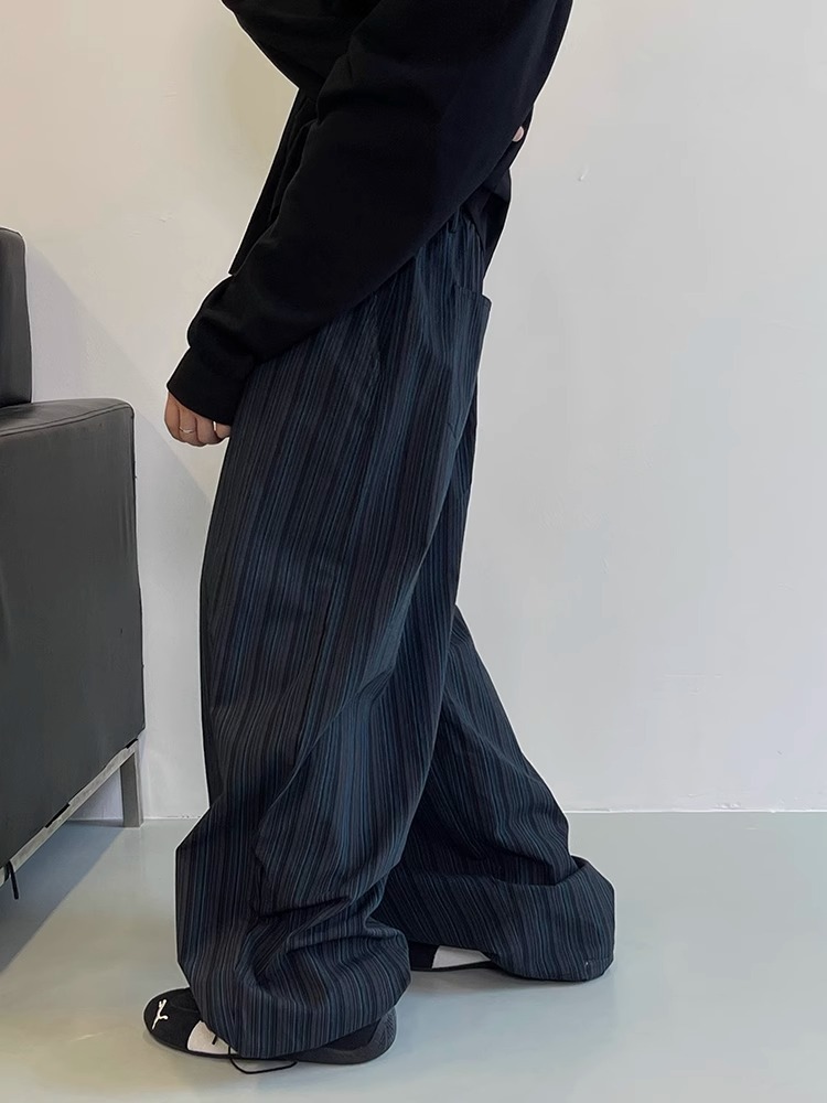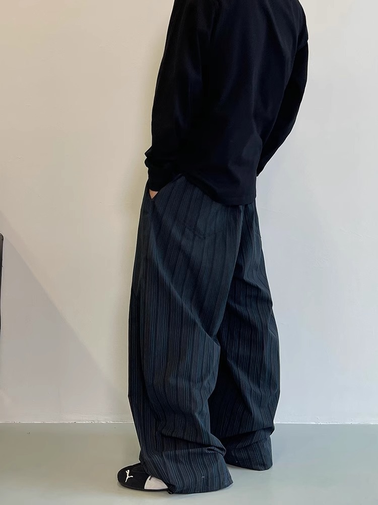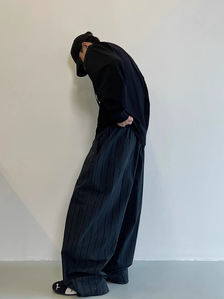 봄과 가을 새로운 빈티지 수직 줄무늬 마체 테 캐주얼 바지 남성용 느슨한 다리 염색 넓은 다리 긴 바지스토어 가기