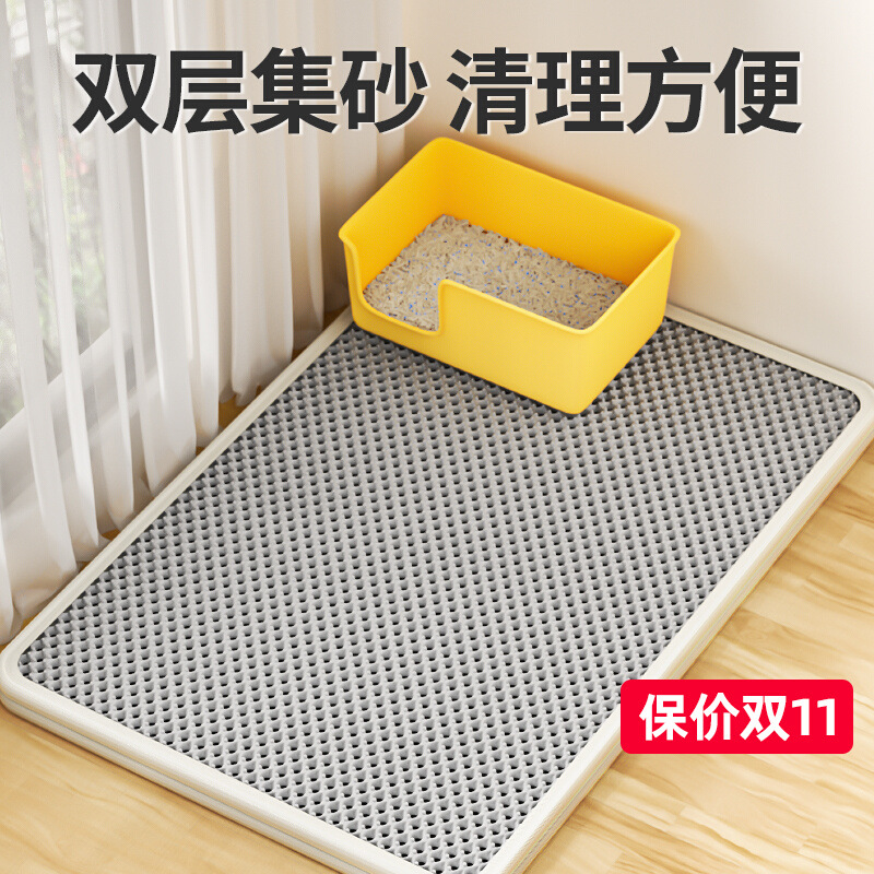 고양이 쓰레기 매트 안티 테이크 아웃 고양이 쓰레기 분지 안티 스플래시 매트 더블 레이어 필터 누설 제어 매트 애완 동물 고양이 용품 Lingzhi스토어 가기