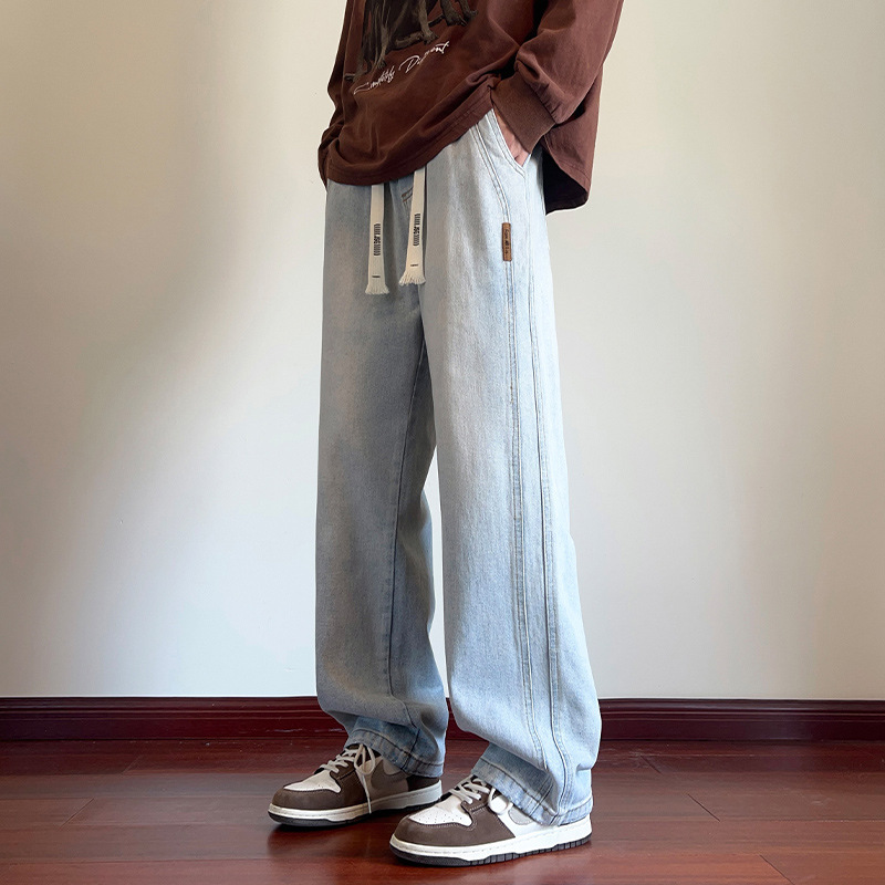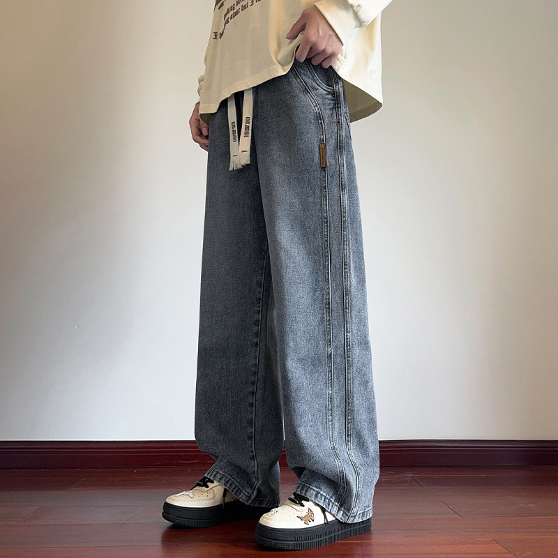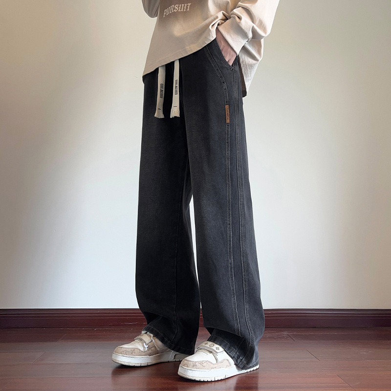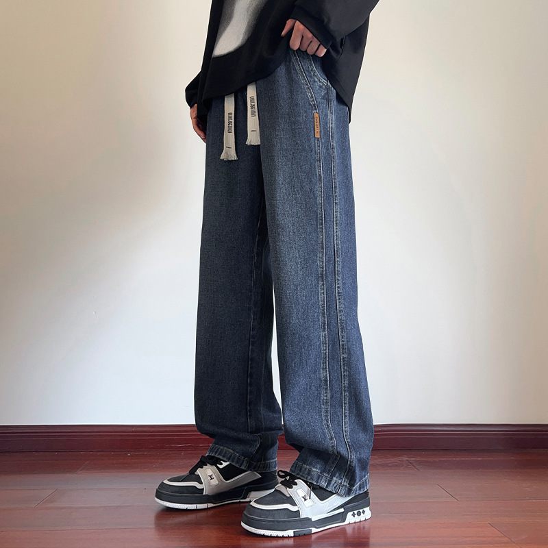 청바지 남자의 가을과 겨울 트렌디 브랜드 하이 스트리트 캐주얼 바지 2024 새로운 느슨한 키가 큰 슬리밍 스트레이트 레그 와이드 레그 팬츠스토어 가기