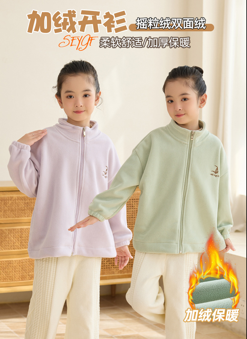 어린이 양털 코트 2024 새로운 가을/겨울 캐시미어 소년 소녀 캐주얼 의류 아기 기모 면 옷스토어 가기