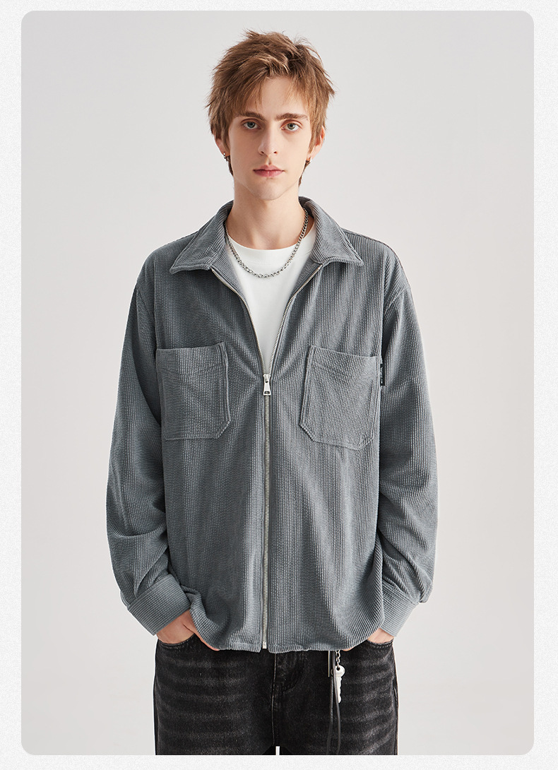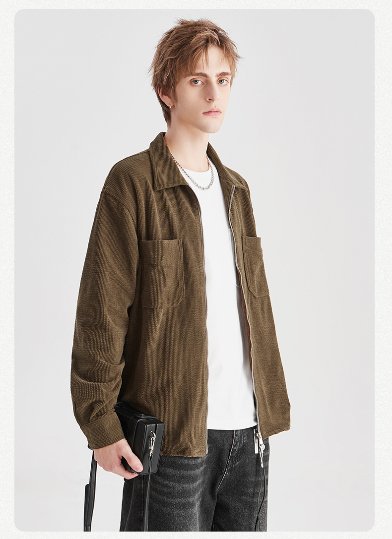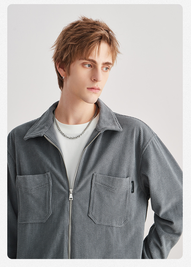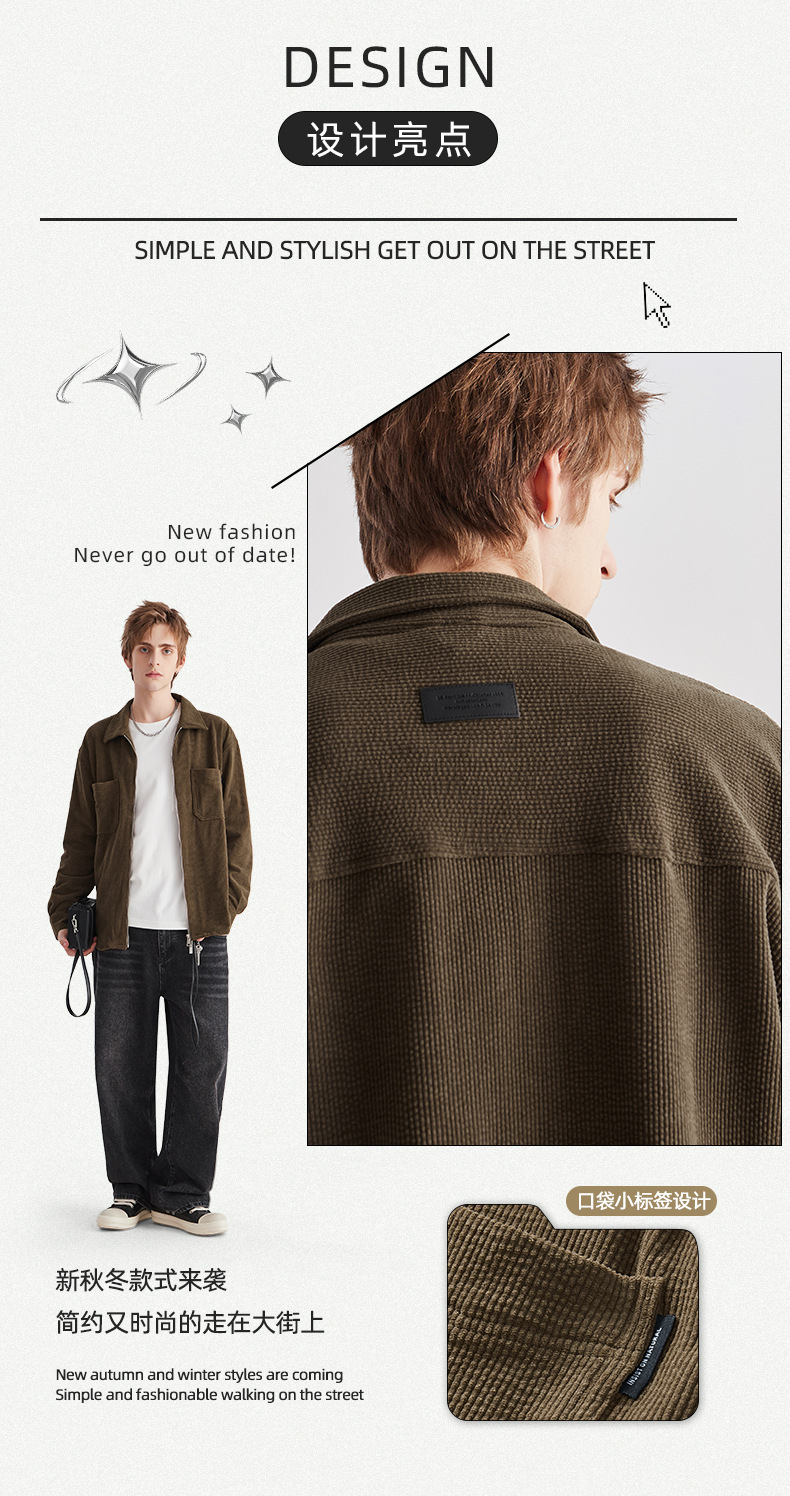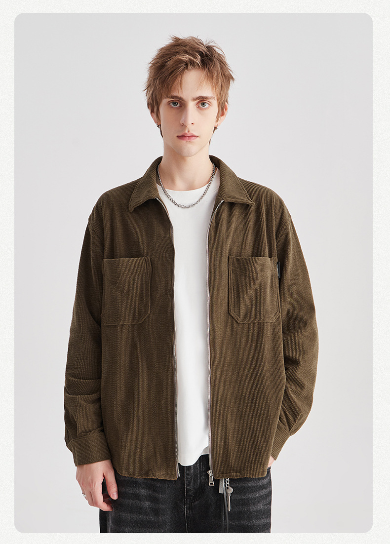 APO 남성 | 가을/겨울 새로운 코듀로이 셔츠 남자의 높은 감각 느슨한 지퍼 옷깃 긴 소매 셔츠 재킷