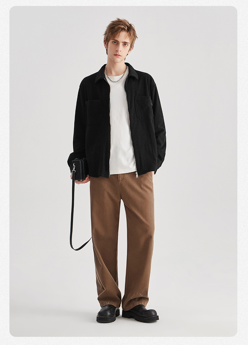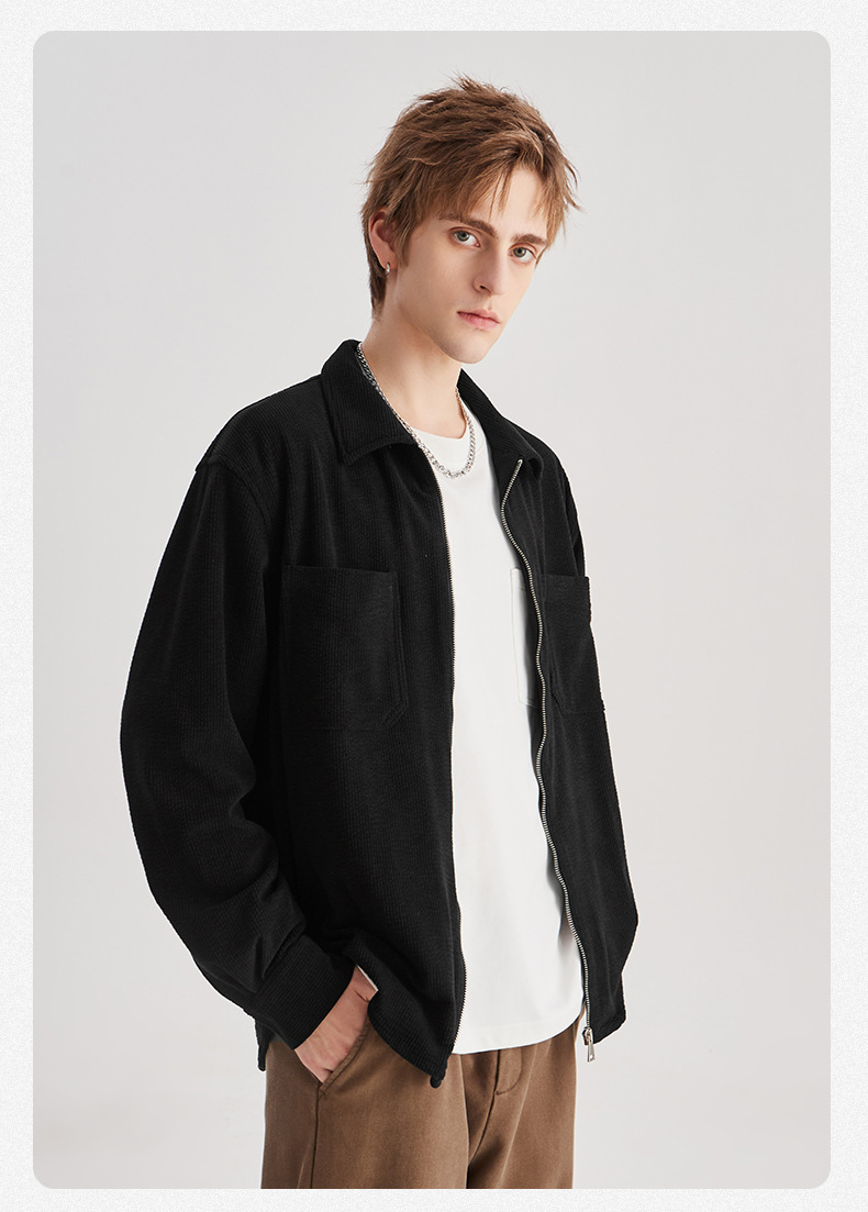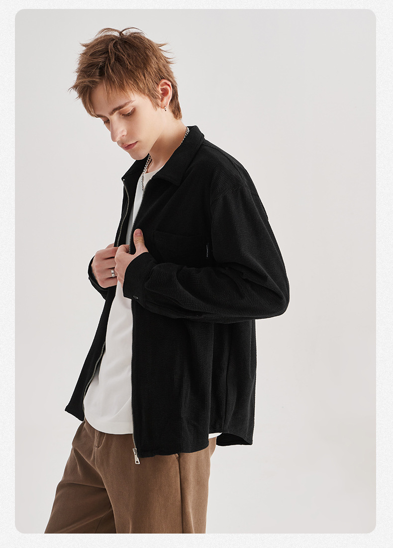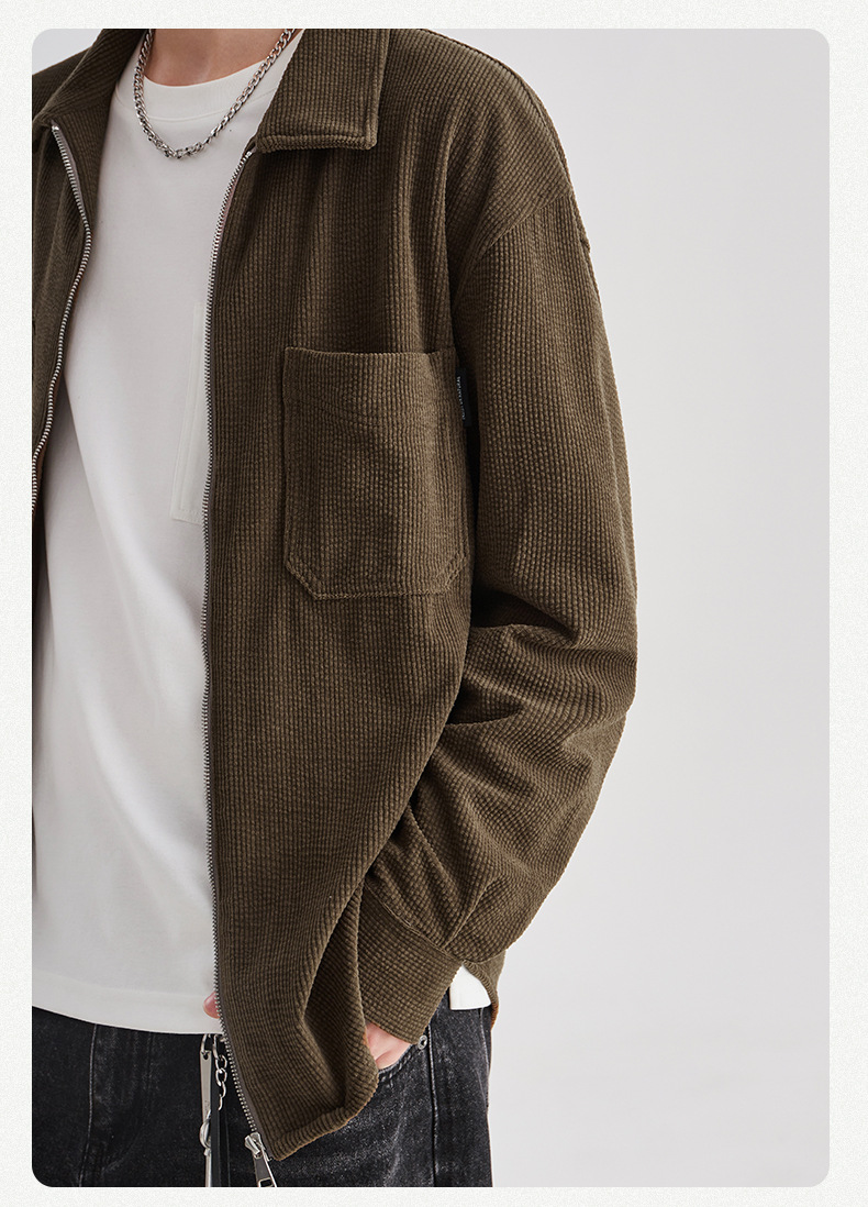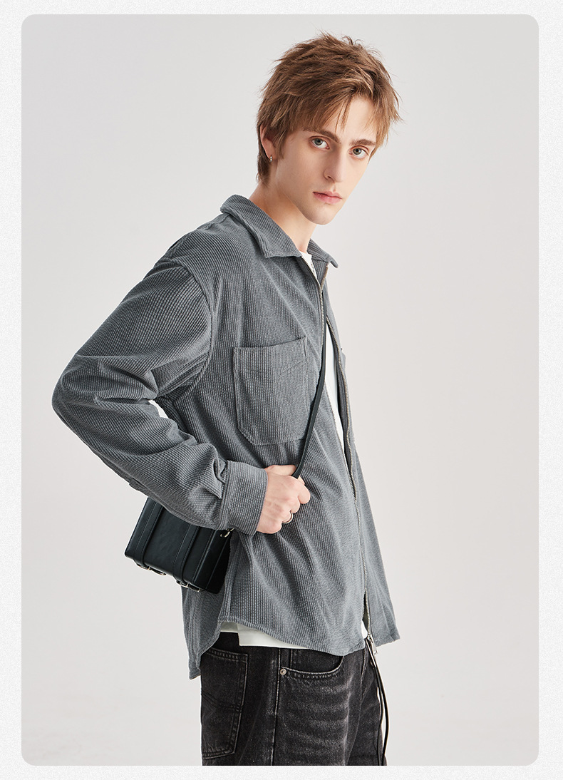 APO 남성 | 가을/겨울 새로운 코듀로이 셔츠 남자의 높은 감각 느슨한 지퍼 옷깃 긴 소매 셔츠 재킷