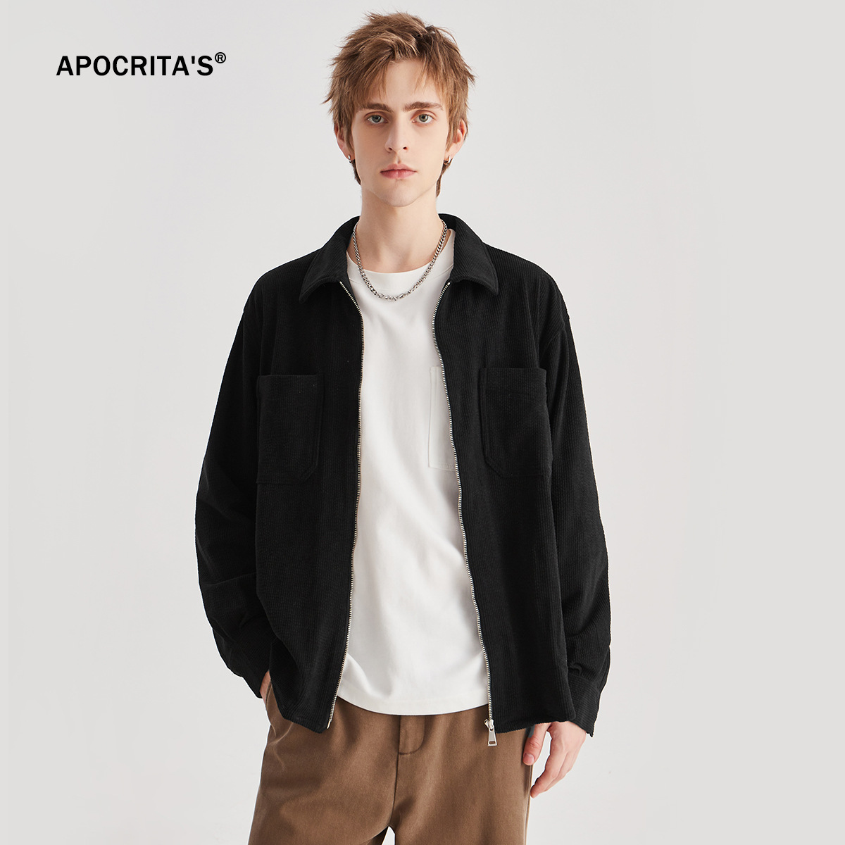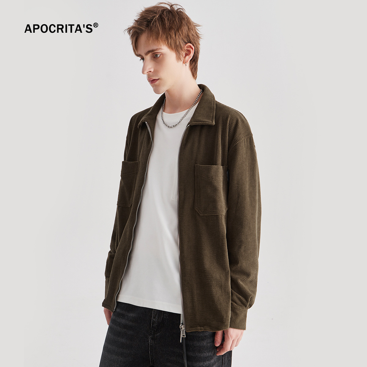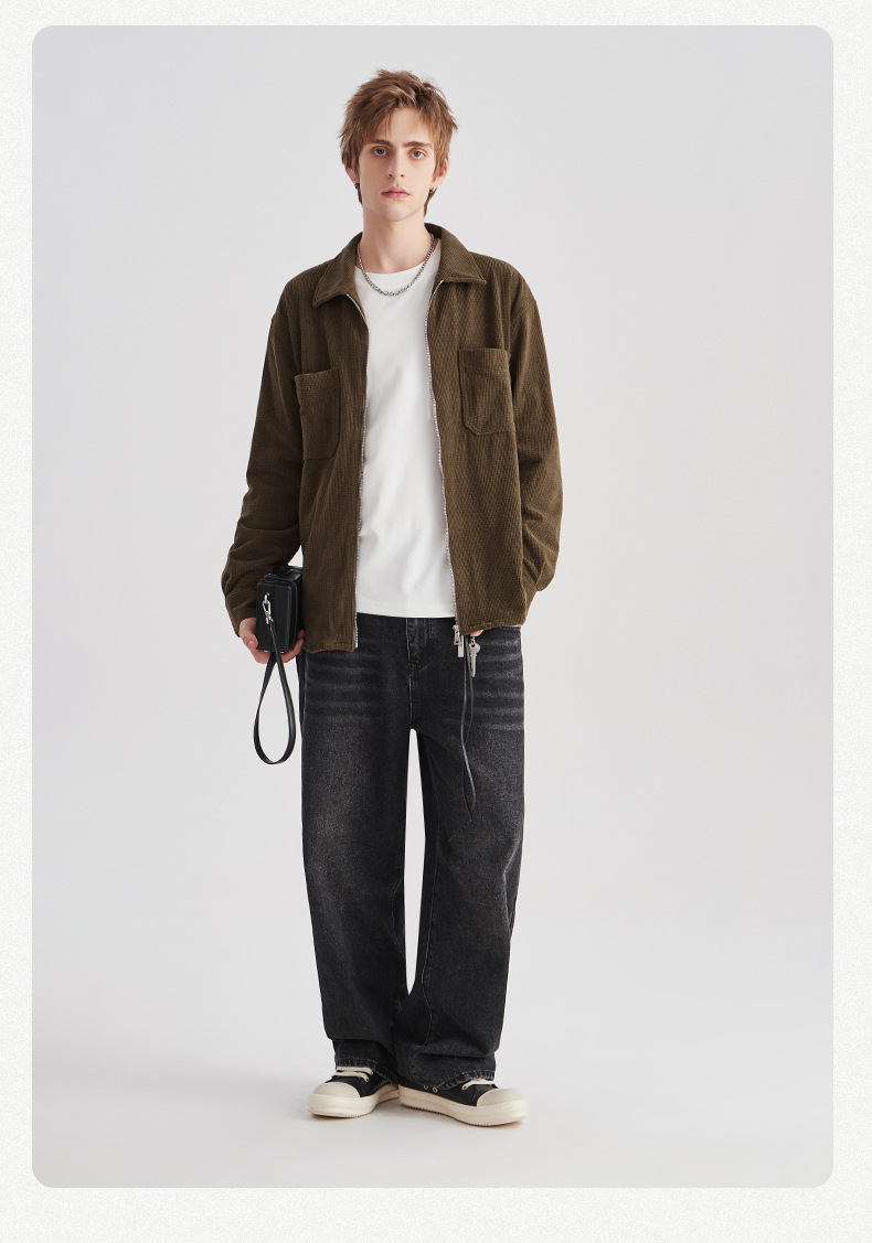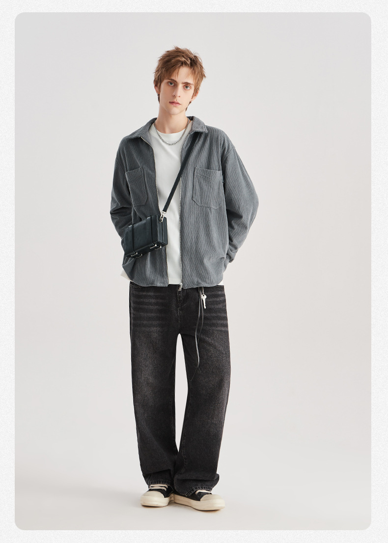 APO 남성 | 가을/겨울 새로운 코듀로이 셔츠 남자의 높은 감각 느슨한 지퍼 옷깃 긴 소매 셔츠 재킷