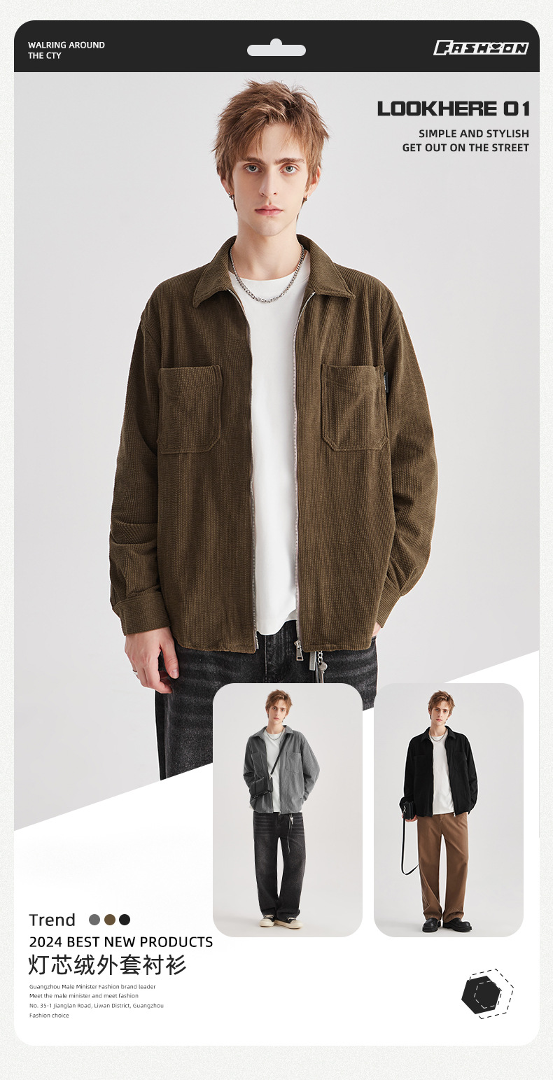 APO 남성 | 가을/겨울 새로운 코듀로이 셔츠 남자의 높은 감각 느슨한 지퍼 옷깃 긴 소매 셔츠 재킷스토어 가기