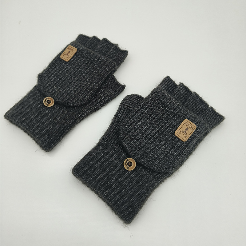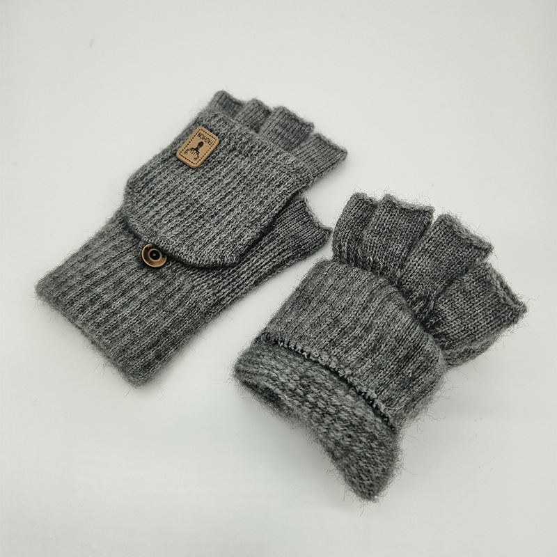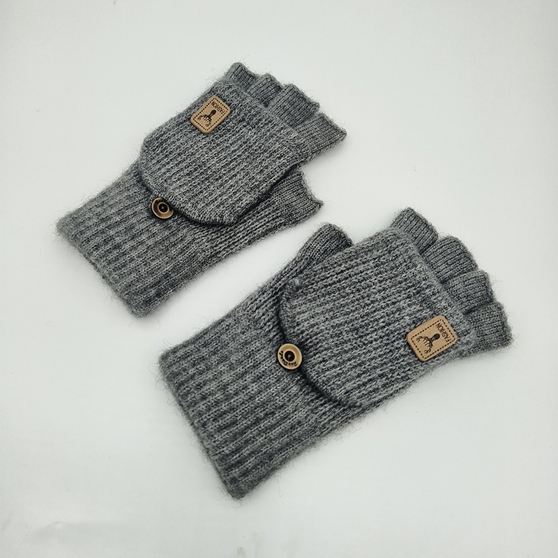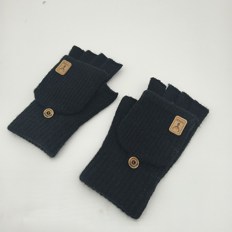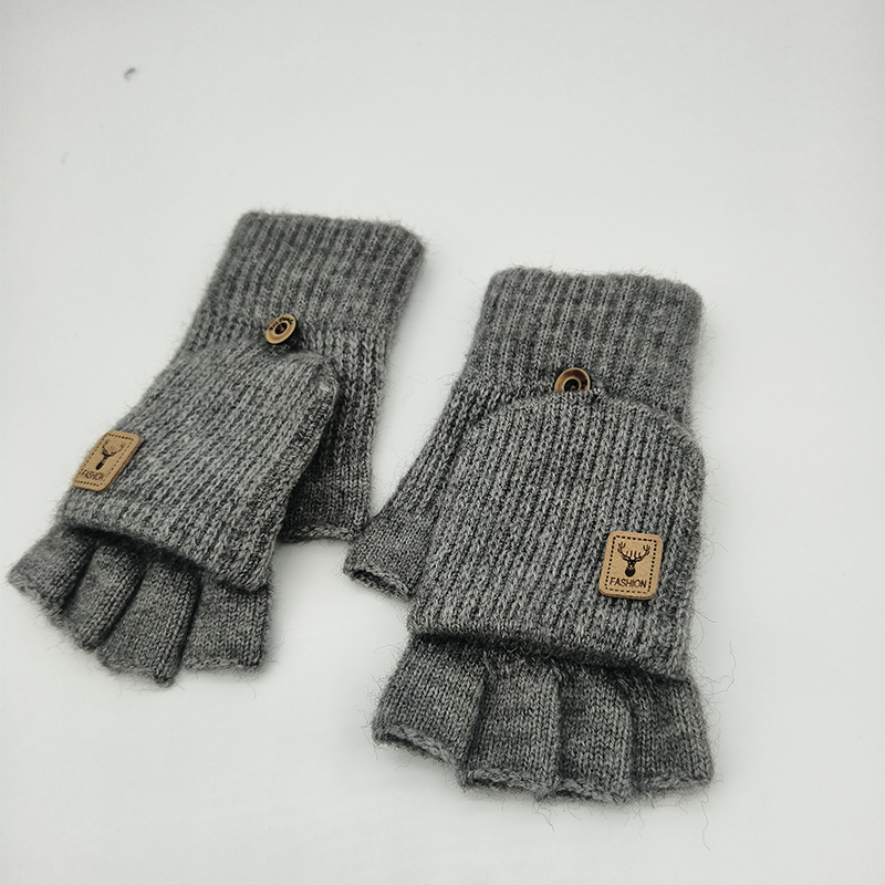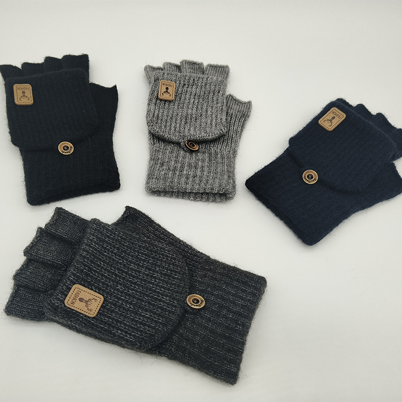 새로운 남성의 가을과 겨울 니트 학생 반 손가락 따뜻한 겨울 승마 학생 감기 방지 플립 온 장갑 쓰기