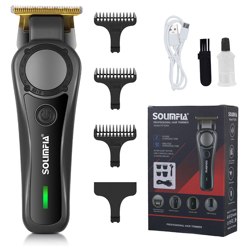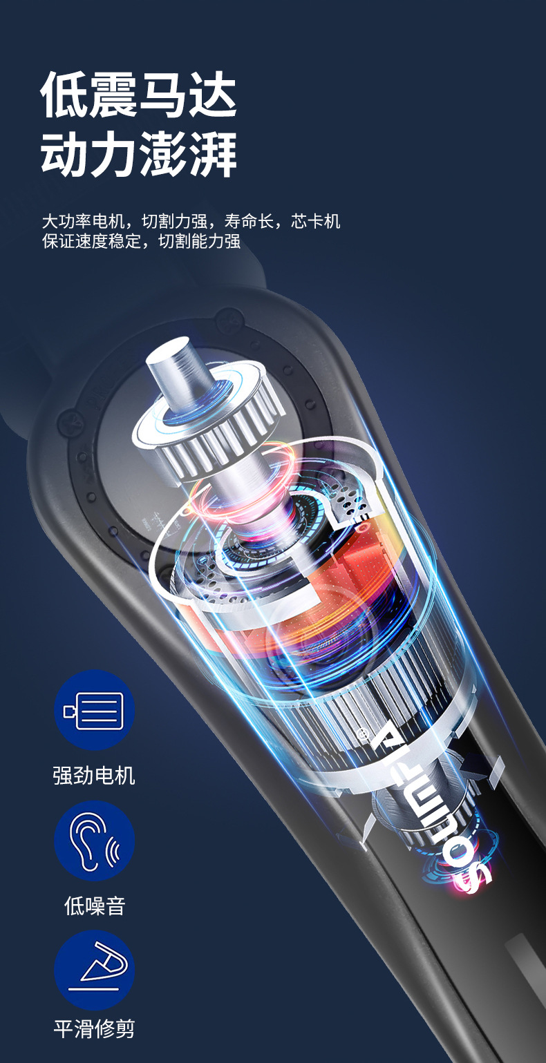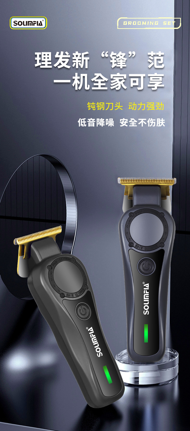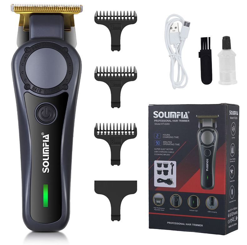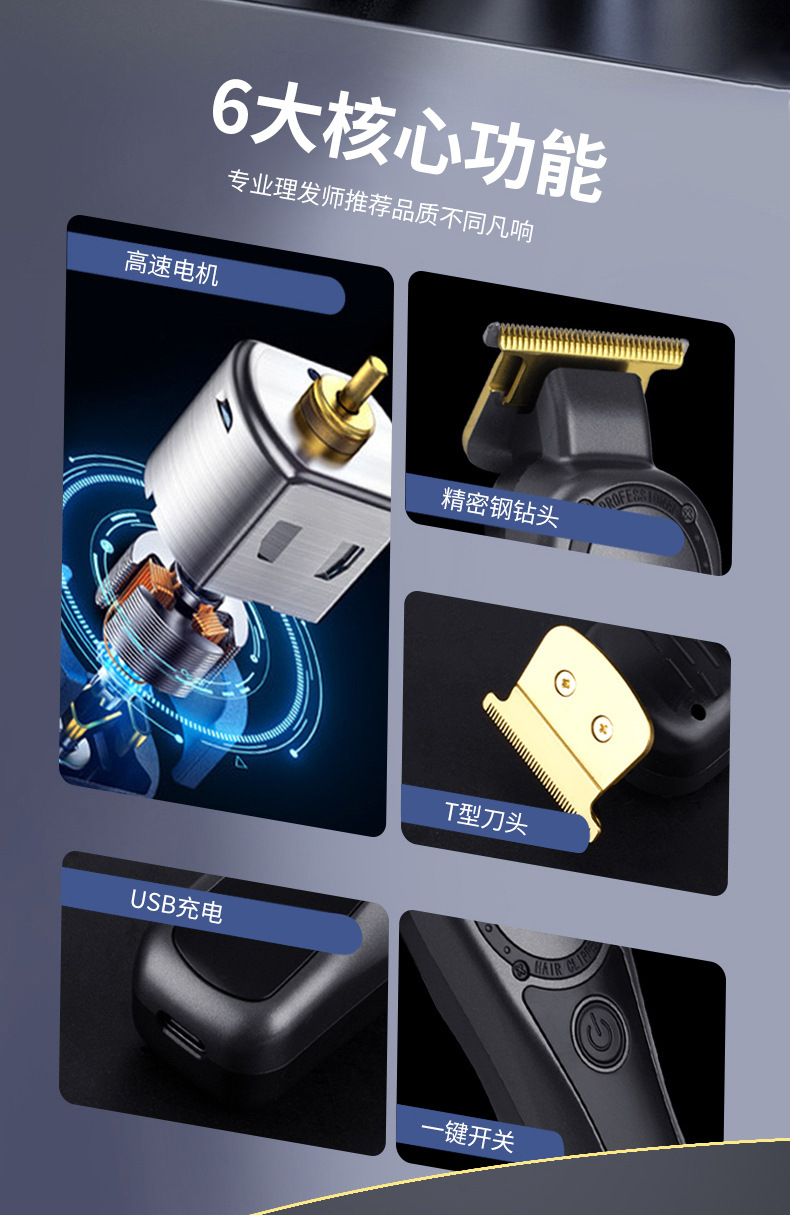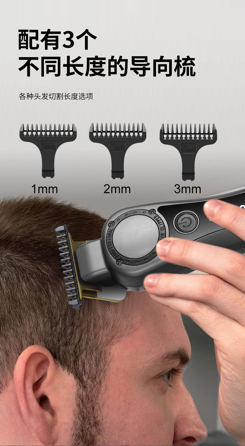 配置:理发器,清洁刷,3个卡尺(1/2/3mm) USB线,多国语言说明书,润滑油
