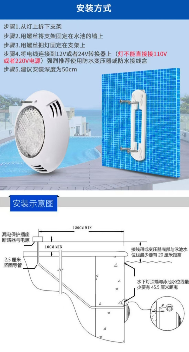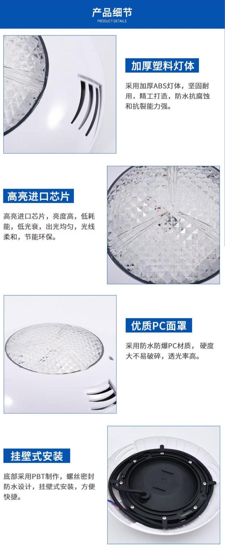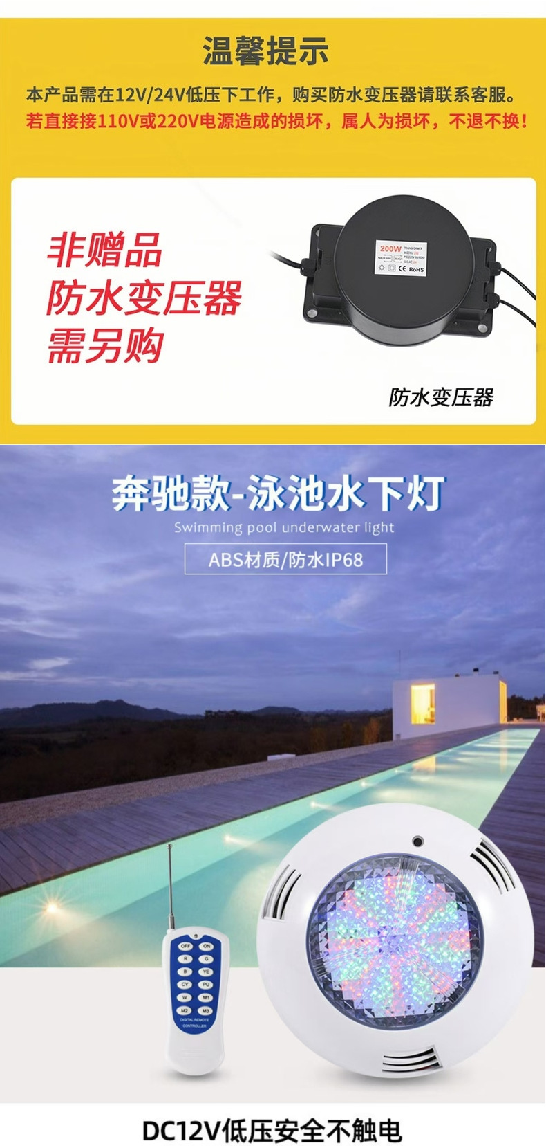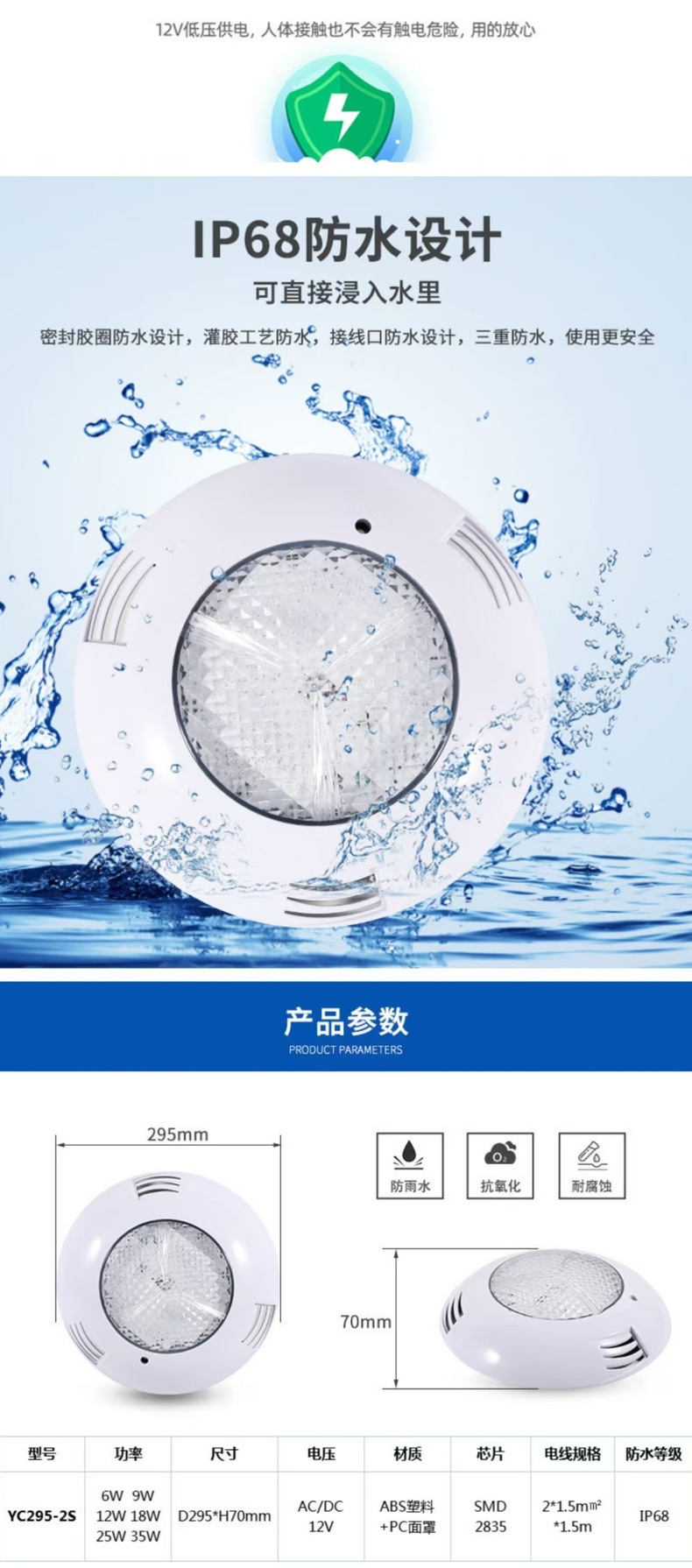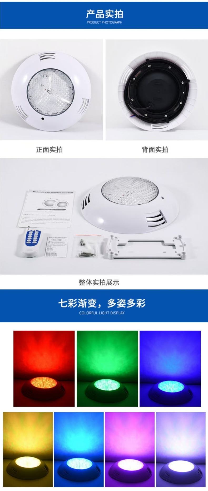 RGB 다채로운 무선 리모컨 수영장 조명 12V24V 벽걸이형 수중 조명 플라스틱 특수 실내 수영장 조명