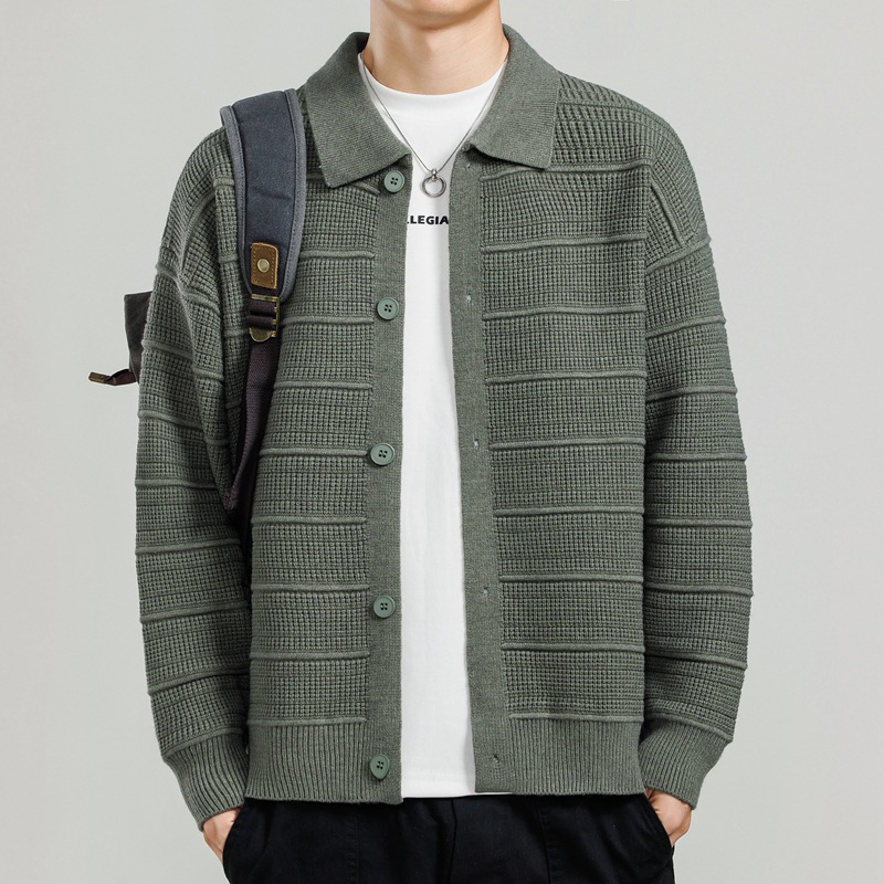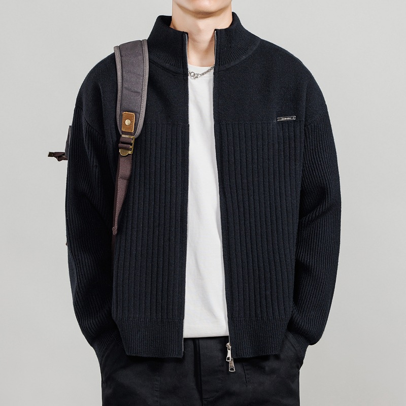 Qiaodi Munla 봄과 가을 2024 새로운 패션 브랜드 니트 카디건 자켓 루즈 남성용 두꺼운 따뜻한 재킷